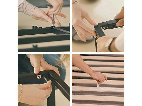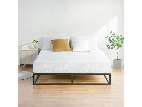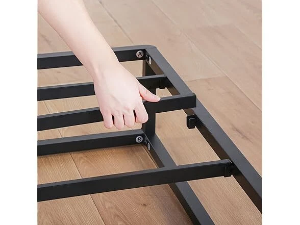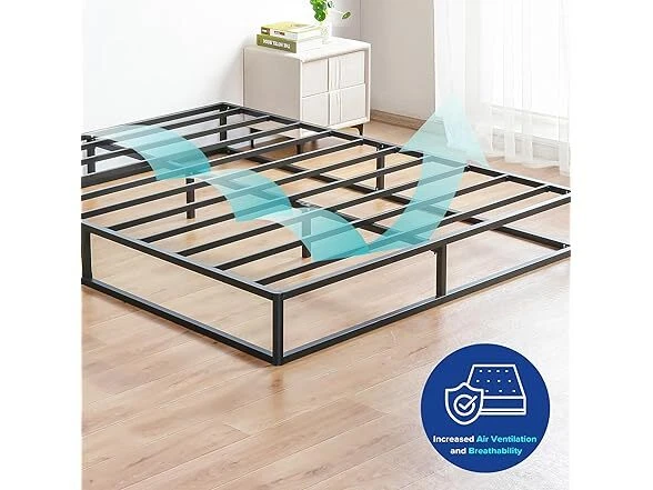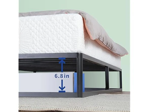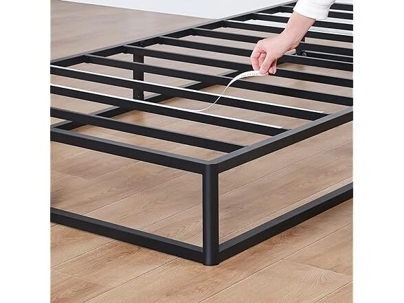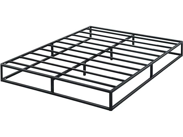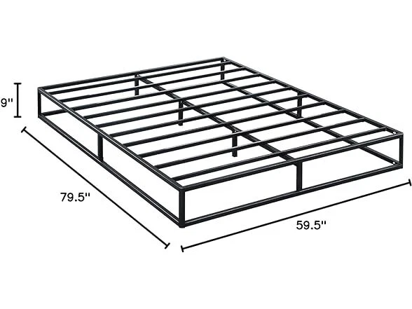 Olee Sleep 9 Inch Modern Metal Platform Bed Frame, Steel Slat Anti-Slip Support, Steel Mattress Foundation, No Box Spring Needed, Black, Queen Size Condition: New Features [ Outer Dimensions ] - 79.5 x 59.5 x 9 inches [ Inner Dimensions ] - 77.5 x 57.5 inches [ Sturdy Construction ] - Crafted with reinforced high-quality steel which ensures both safety and durability, offering a strong and dependable support structure for capacity up to 700 lbs [ Minimal Design ] - Modern and minimal anti-slip steel slat foundation with a sleek black finish that understands and fits perfectly into your bedroom style [ Noise Free ] - Precise engineering and advanced technology guarantee a quiet, noise free, sleeping environment [ Extra Storage ] - Convenience extra under bed storage space with a vertical clearance of approximately 8 inches [ No Box Spring Needed ] - Versatile design provides supportive foundation compatible with a spring, hybrid or memory foam mattress, with or without box spring [ Easy Assembly ] - Effortless self-assembly with included instruction manual, tools, and all necessary parts for a hassle-free setup experience Installation Manual (PDF) Specs In the Box: (1) Olee Sleep 9 Inch Modern Metal Platform Bed Frame, Steel Slat Anti-Slip Support, Steel Mattress Foundation, No Box Spring Needed, Black, Queen Size Specifications Item Weight: 39.8 pounds Item Dimensions: 79.5"L x 59.5"W x 9"H Size: Queen Ground to Item Distance: 9 inches Care Instructions: Wipe with Dry Cloth Special Feature: Minimal Design, Sturdy Construction, Extra Storage, Noise Free