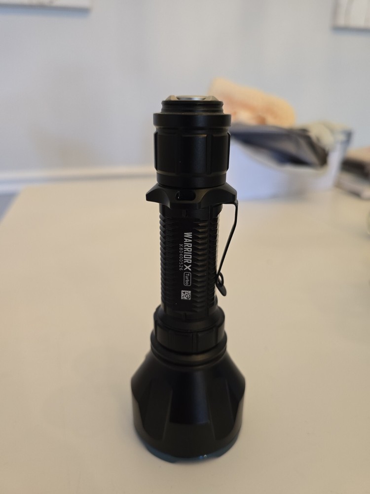 UPC:6972378121325Features:Batteries Included, Clip On, Handheld, RechargeableMPN:WARRIOR-X-TURBOBrightness:1100 LumensBulb Type:LEDColor:BlackType:Tacticalgtin13:6972378121325Battery Type:Includes a Customized 5000mAh BatteryBrand:OlightModel:Olight Warrior X Turbo Black