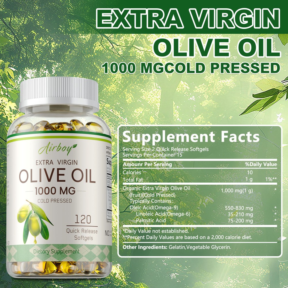 Effects: Heart Health,Immune Support Ingredients: Olive Oil Directions: Take 2 capsules once daily after a meal. Shipping: Ships within 48 hours on working days. Shelf life: 2 years Description: Natural Omega 6 & 9, extra virgin, cold pressed, to support energy, heart, internal circulation, complexion and immune health. Laboratory Tested with Trusted Ingredients. Our Extra Strength Olive Leaf Extract does not contain any sweeteners, artificial flavors, wheat, corn, gluten, soy, milk, egg, fish, shellfish or tree nut ingredients. Document