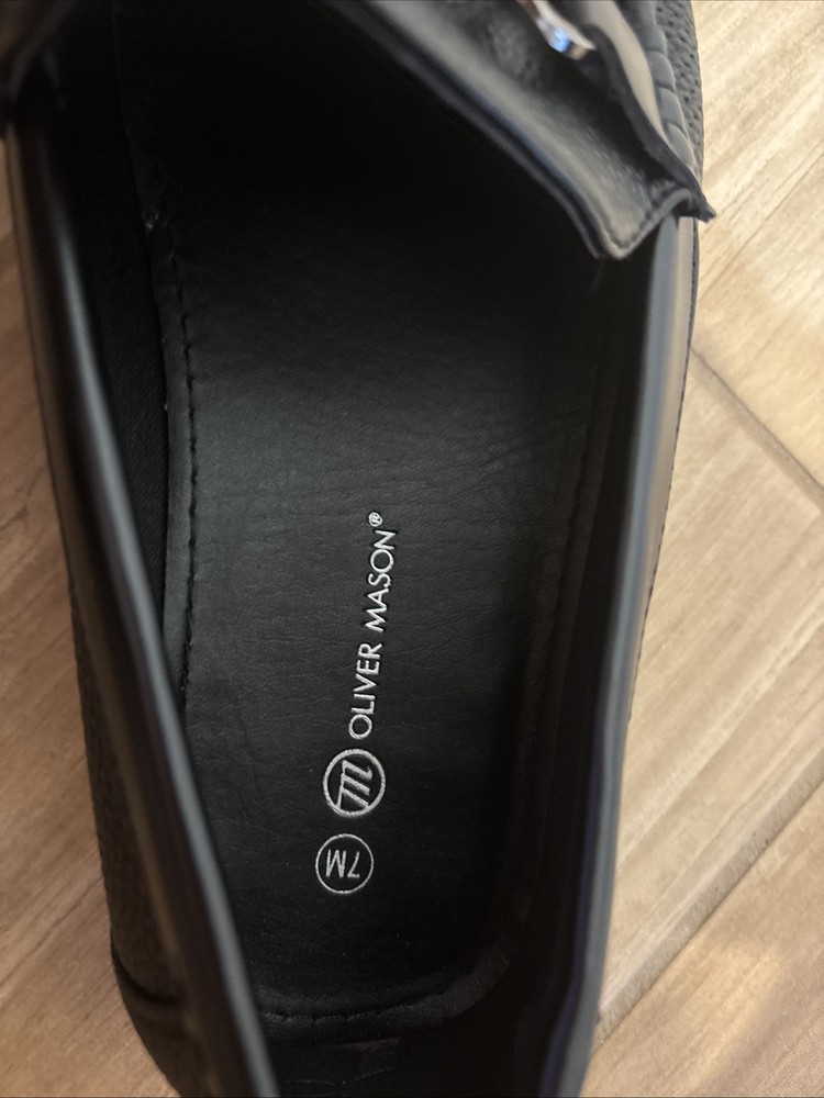 Elevate your shoe game with these stylish Oliver Mason dress shoes. Designed for comfort and versatility, these black loafers feature a slip-on closure and are perfect for any season. Crafted with man-made materials, these shoes have a solid pattern and are tailored to fit a men's US shoe size 7M. The Lucas character adds a touch of personality to these classic dress shoes, making them a great addition to any wardrobe. Whether you're heading to the office or attending a formal event, these Oliver Mason loafers will keep you looking sharp and feeling comfortable all day long.