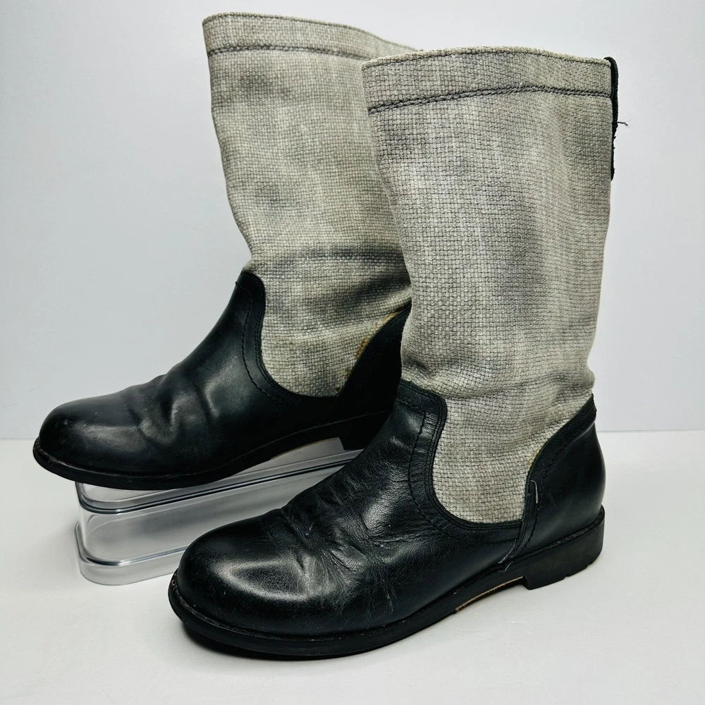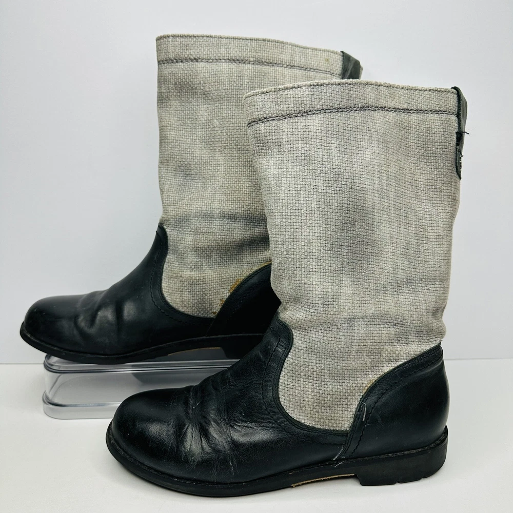 OluKai Haleakala Tall Riding Boots Womens Size 9 Black Gray Leather Canvas Boots. Good used condition. See pictures for details.