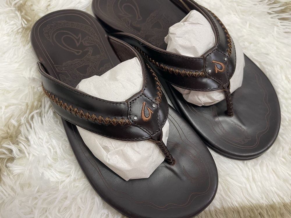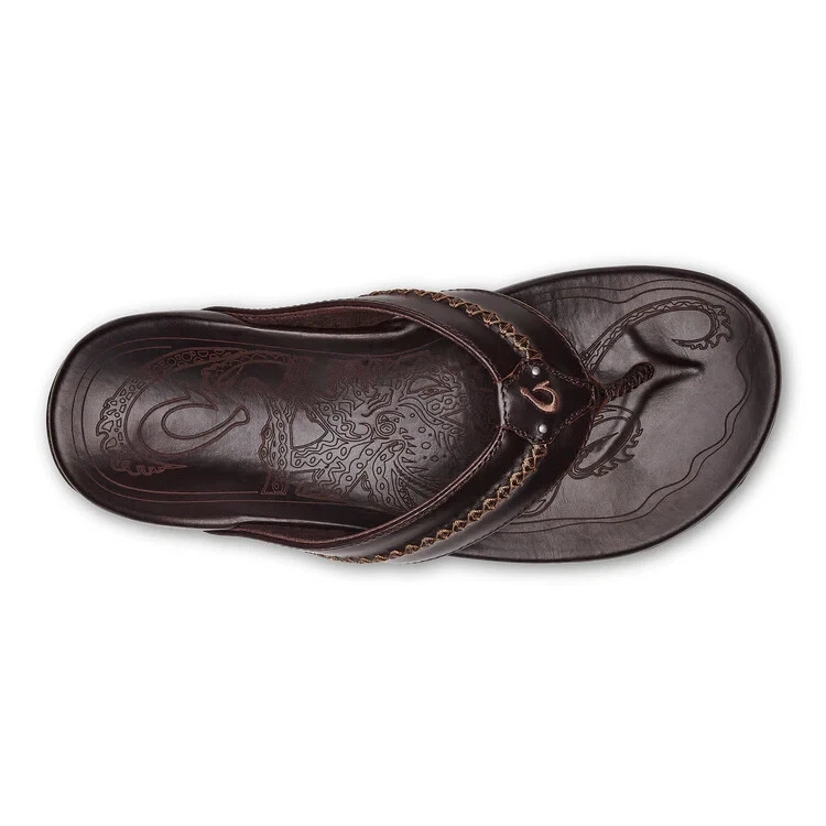 Olukai Men's Hiapo Flip Flops Size 11 Comfortable Beach Sandals Rum Dark Wood