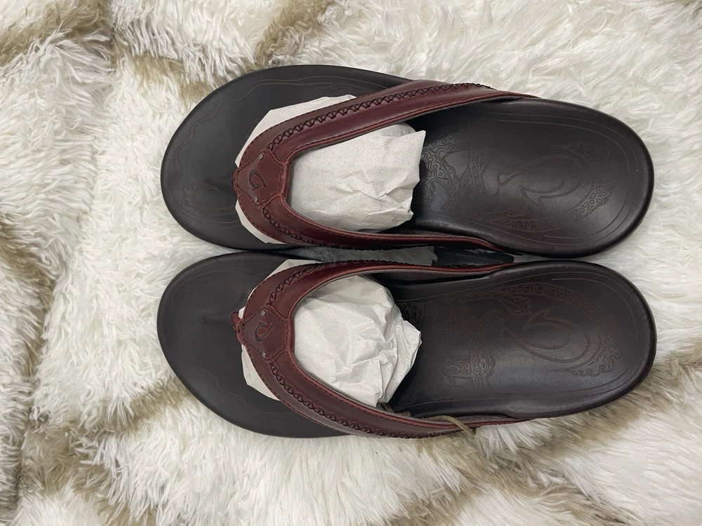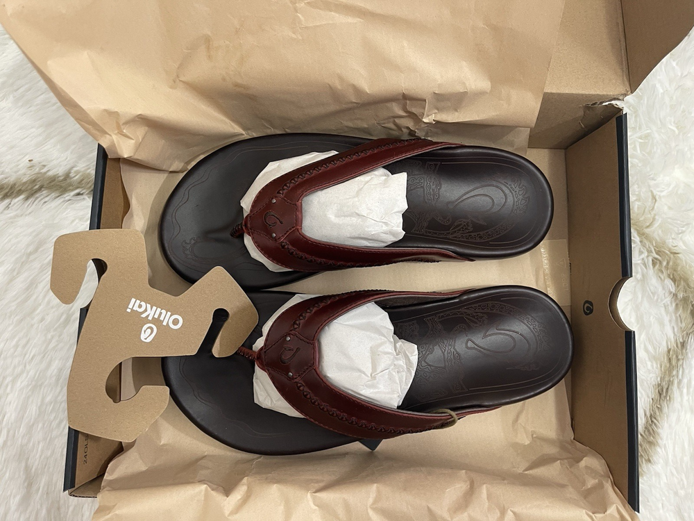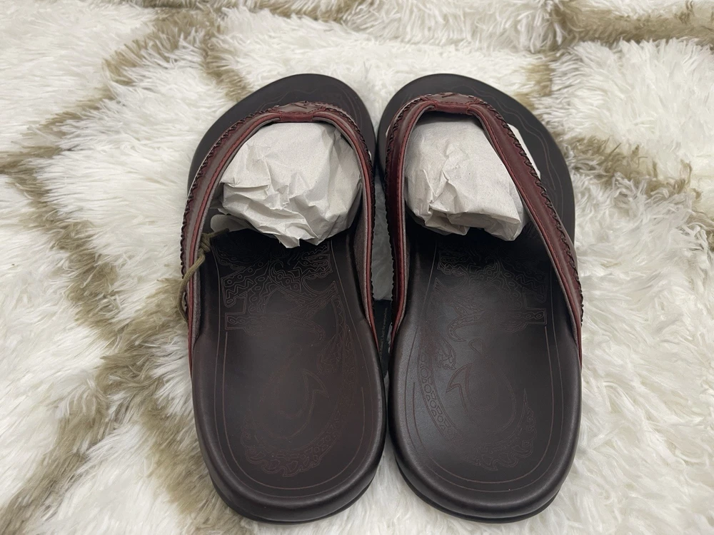 Brand New with box 100% authentic Men's size 11 Color Terra / Dark Wood All sales are final, pleae make sure it's the right size before ordering Fast shipping via UPS Ground OluKai Craftsmanship: Includes octopus-inspired laser-etched artwork on the footbed, canoe lash whipstitching, and an embroidered logo for a distinctive touch. Comfort and Fit: Features rich leather straps, a soft microfiber lining, and a comfortable handsewn toe post for a snug fit. Premium Materials: Crafted with premium full-grain leather for a luxurious and durable finish.