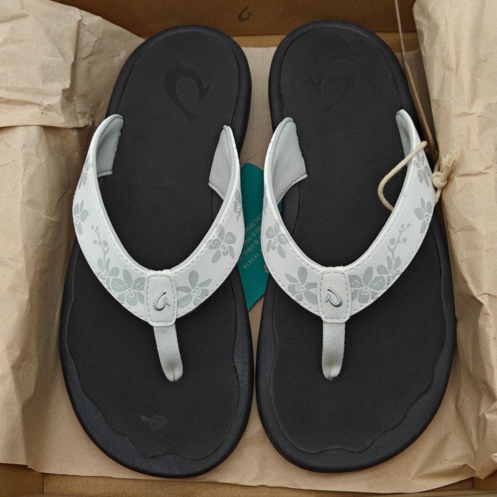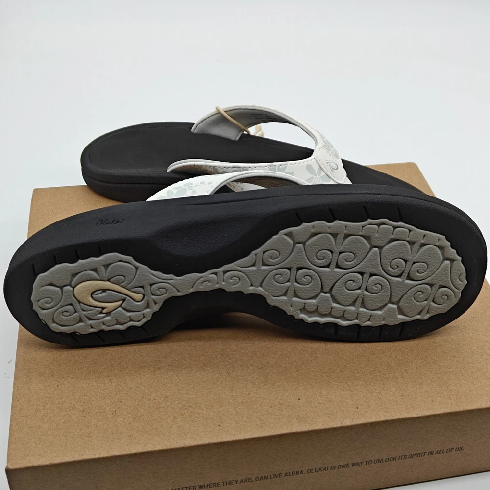 OluKai Kulapa Kai Womens Size 7-11 White Black Flip Flops 20198-4R40