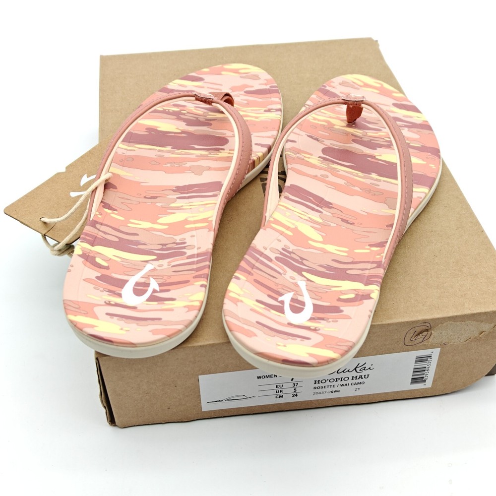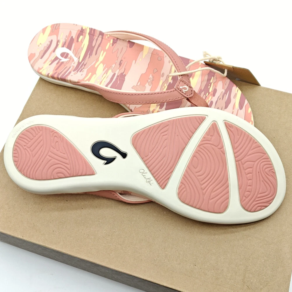 Upper Material: Synthetic Closure: Slip On Features: Arch Support Style: Flip Flop Type: Slipper Department: Women Brand: OluKai Model: Thong Theme: Beach, Flower Color: Pink US Shoe Size: 7