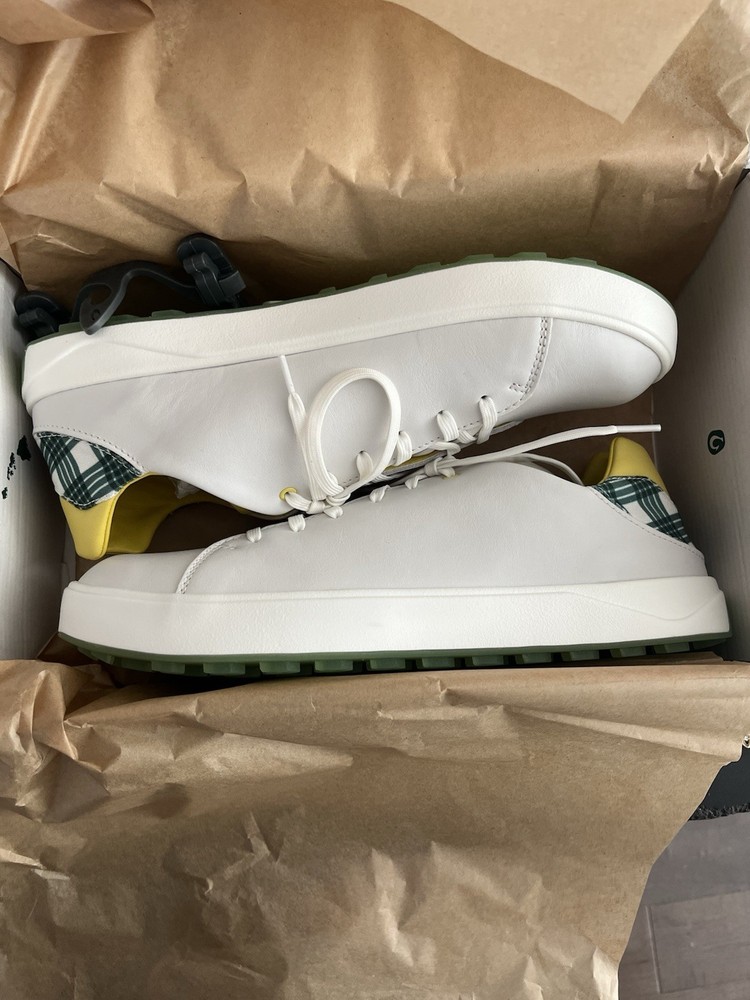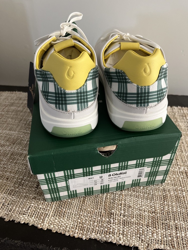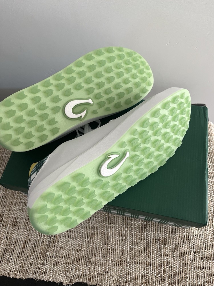 The Olukai 2025 “The Masters” Wai‘alae Golf Shoes in Bright White/Medium Green Size 12 are a stylish and functional choice for any golfer. Featuring a lace-up closure, leather upper material, and a rubber cleat for traction on the golf course, these sneakers offer comfort, cushioning, and moisture-wicking features. With a limited edition design, these athletic shoes are designed for performance and are suitable for all seasons. Perfect for avid golfers looking for both style and functionality in their footwear.