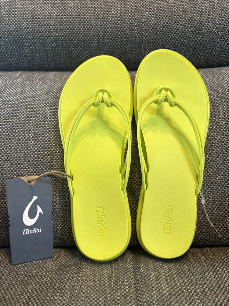 OLUKAI CITRON/CITRON 'AKA KNOTTED STRAPS BEACH/POOL FLIP FLOP SANDALS 8 NWT. Shipped with USPS Ground Advantage.