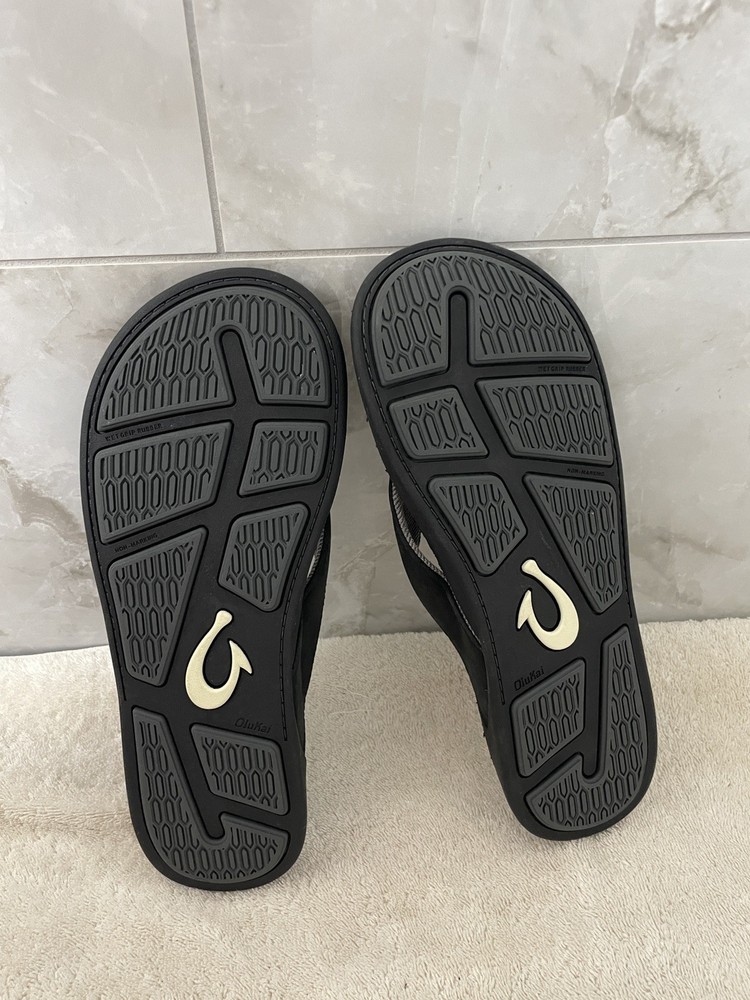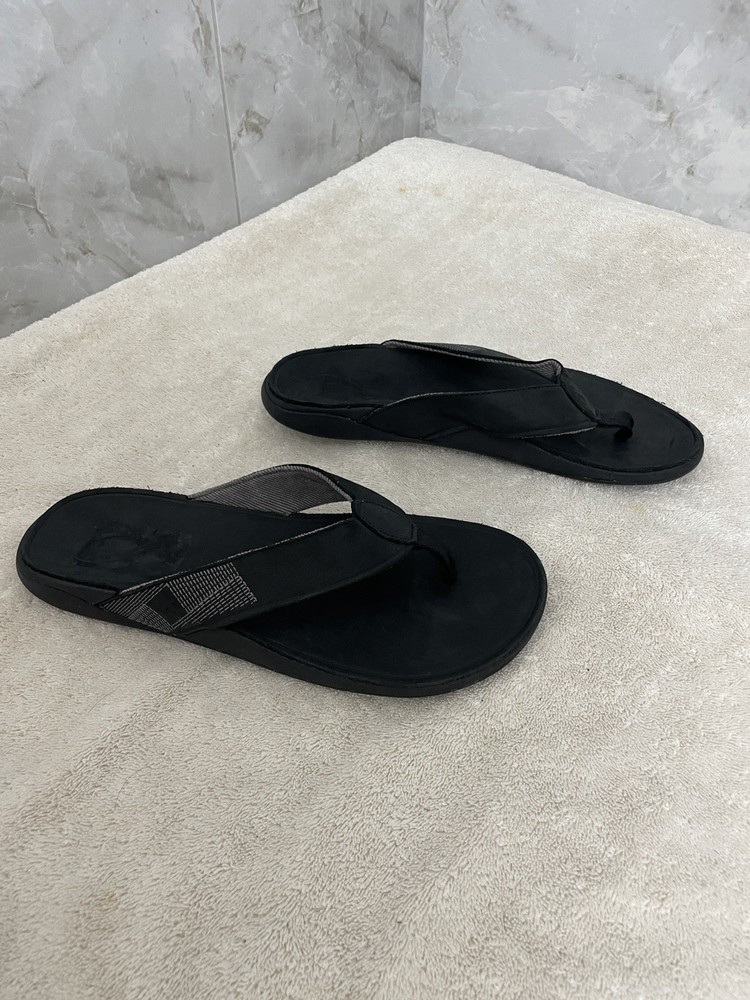 The Olukai Men's Tuahine Leather Flip Flop Sandals in Black are a stylish and comfortable choice for men. With a leather upper and outsole, these sandals provide durability and a quality feel. The flip flop style offers a relaxed fit, making them perfect for casual wear. The size 10 in US and 43 in EU ensures a comfortable fit for most men. The Olukai brand is known for its high-quality footwear, making these sandals a reliable choice for everyday wear. New without hang tags