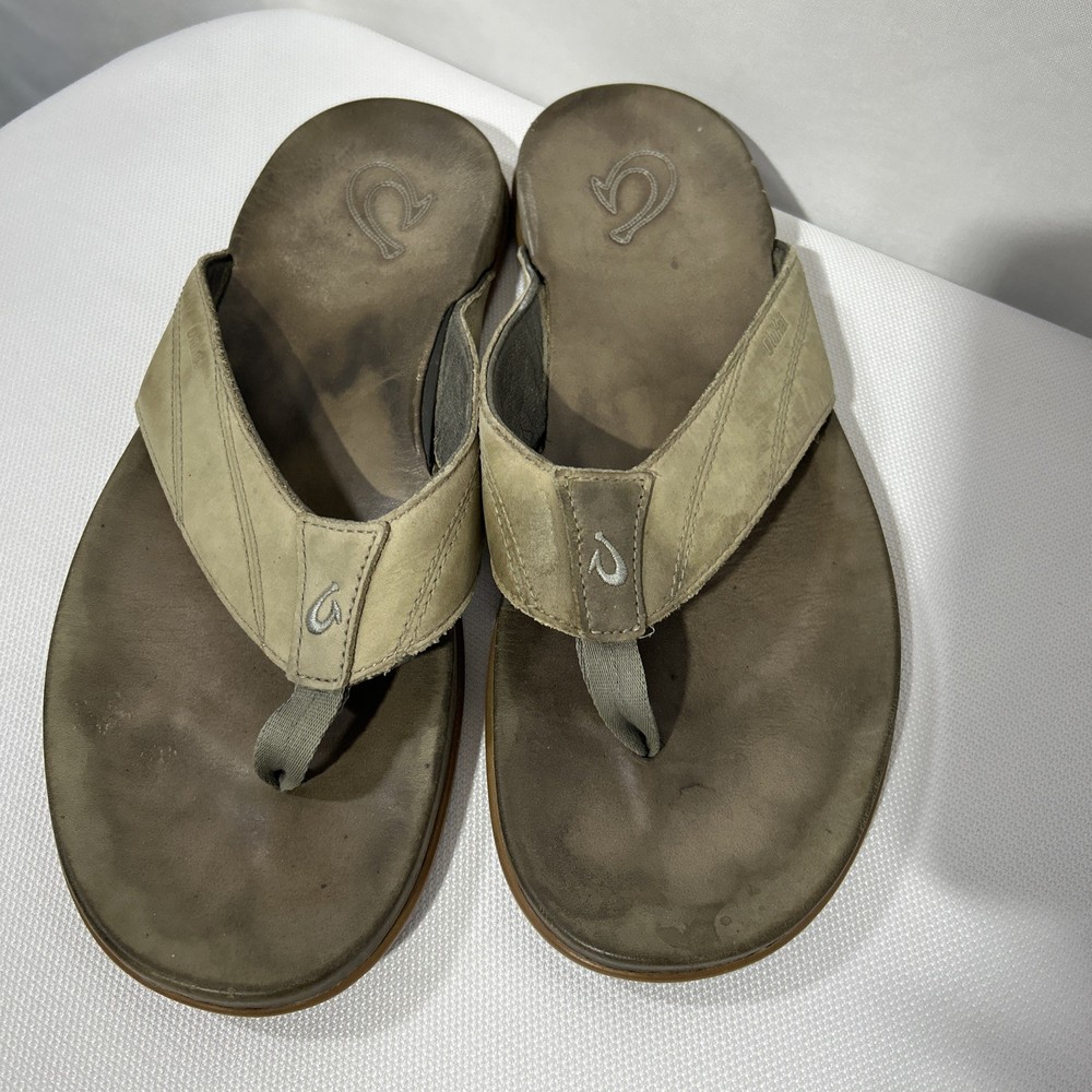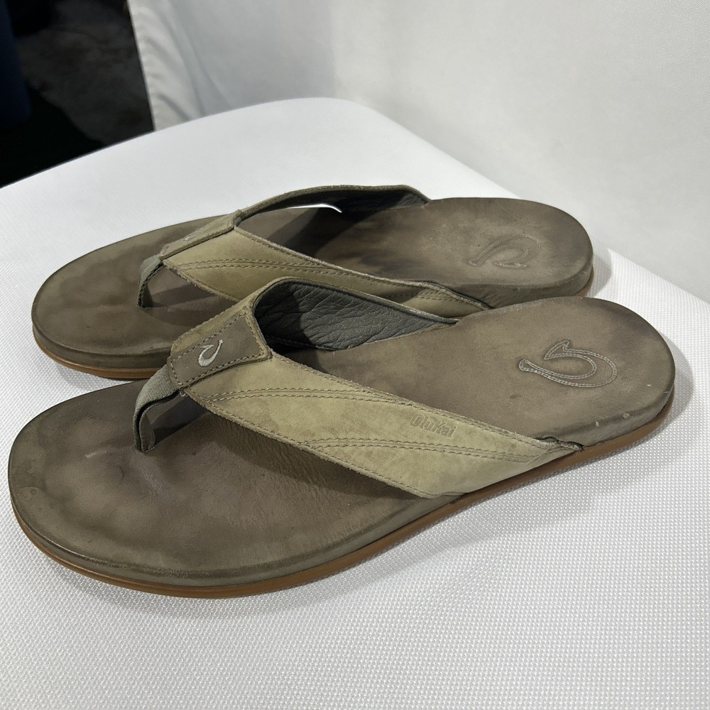 Olukai Tuahine Mens Size 10 Leather Flip Flops Beach Sandals Hunter NWT