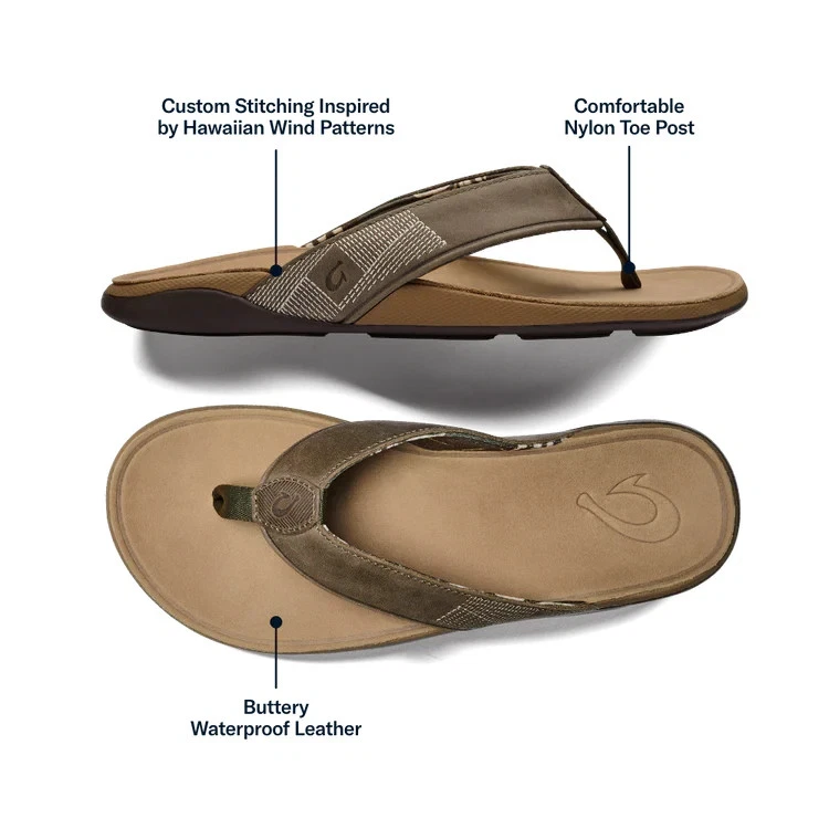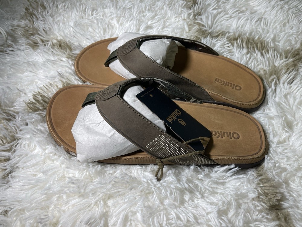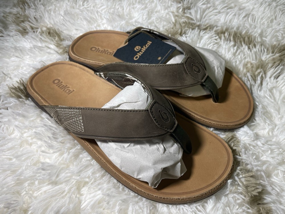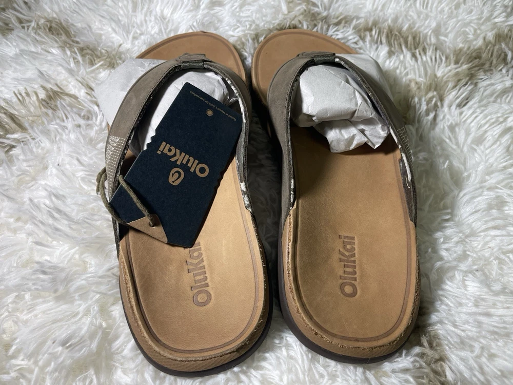 Brand New with box 100% authentic Men's size 10 Color Hunter/Golden Sand All sales are final, pleae make sure it's the right size before ordering Fast shipping via UPS Ground Key Features: Waterproof Leather: Made with waterproof full-grain leather, it is ideal for beach activities and water sports. Premium Comfort: Features a soft stretch mesh lining and a comfortable nylon toe post for superior comfort. Hawaiian-Inspired Details: Custom upper stitching design inspired by the cool breeze of Hawaiian winds.