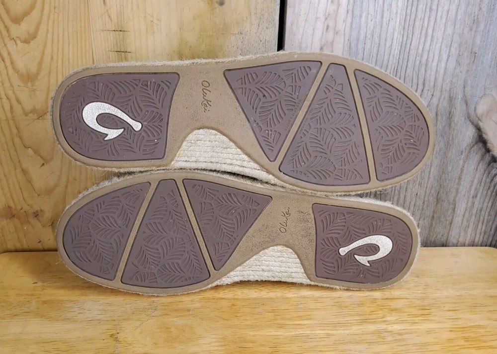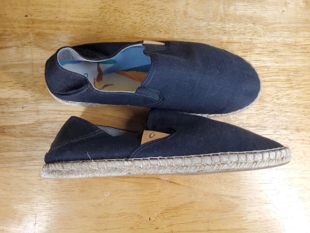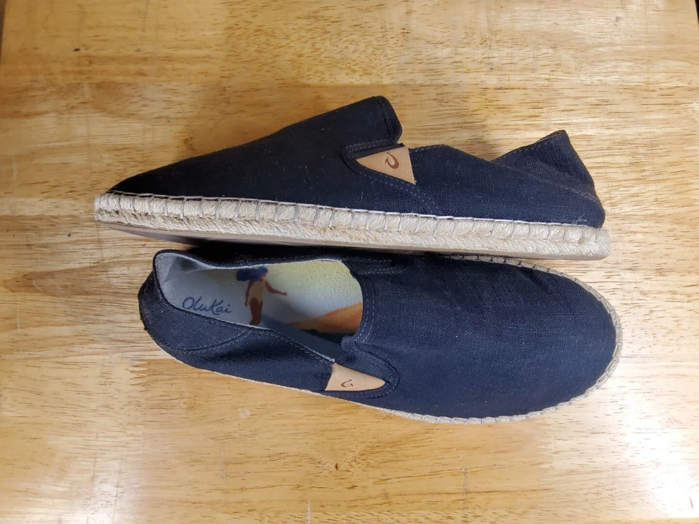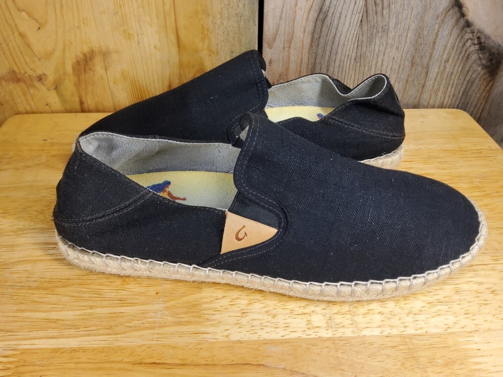 Olukai Women's Kaula Pa'a Kapa comfort slip-on espadrilles size 10 black linen. In great condition, slight signs of wear, mostly at the heel. Good tread, clean footbed. Please see photos for more details.