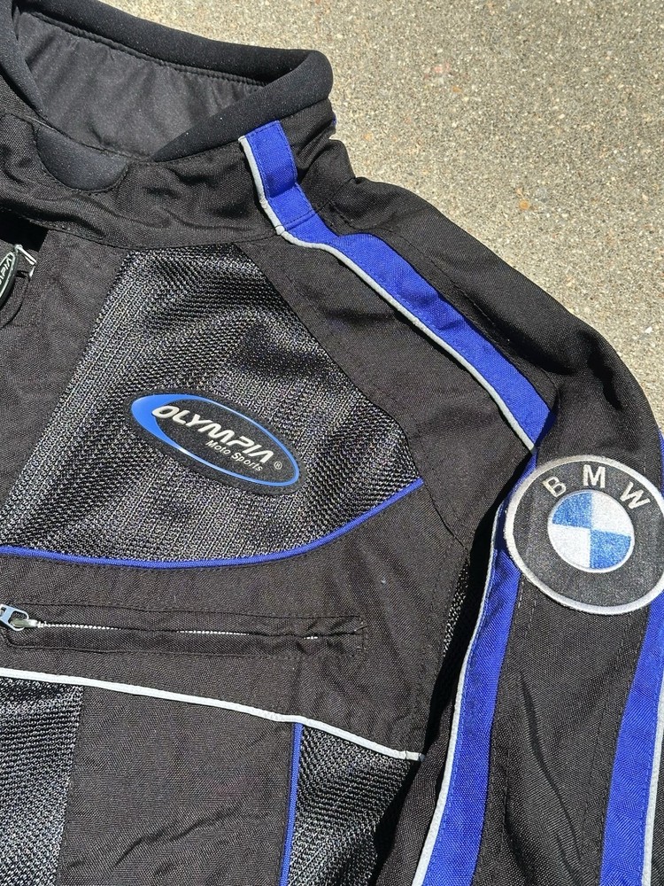 Olympia Moto Sports BMW Jacket. Lightweight with padded detail. Motorcycle racing sport jacket. 25.5x24