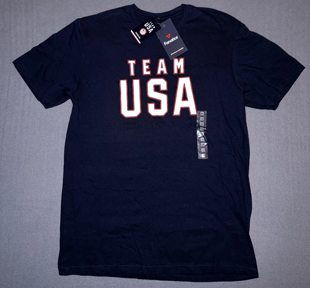Country/Region of Manufacture: Unknown Sport: Olympics Brand: Fanatics Color: Navy Player: N/A Product: Shirt Team: USA Size: M Gender: Men Officially Licensed: Yes Event: Paris 2024