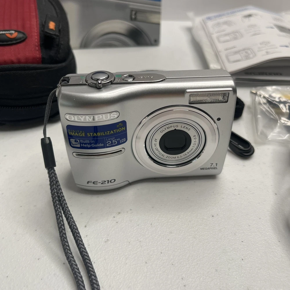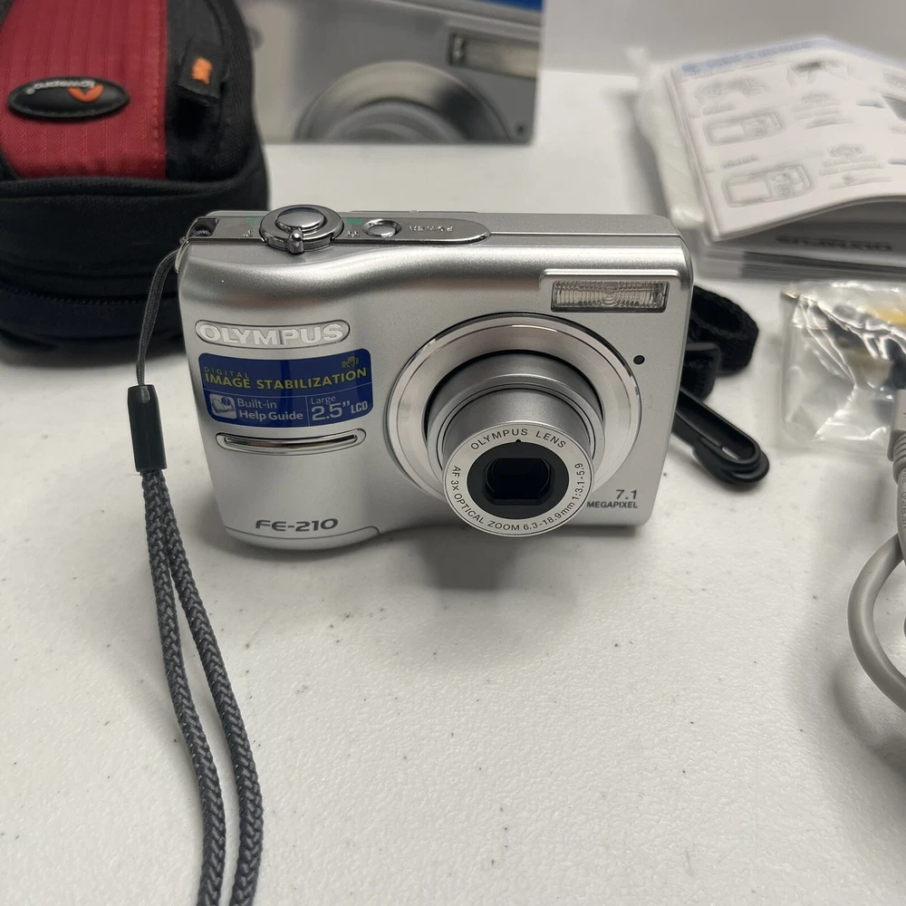 Olympus FE 210 Digital Camera Silver 7.1MP AA Battery Powered Tested & Works Box