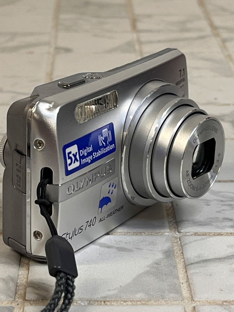 Olympus Stylus 740 7.1 MP Digital Camera Only Silver With 5X Optical Zoom Tested Tested and Working! Comes with camera case and 3 batteries No charger or SD Card Loc: 1.8