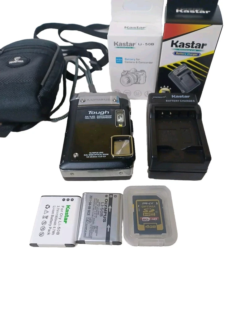 This Olympus Tough TG-810 digital camera is a great addition to your photography equipment. With 14.0 MP maximum resolution, you can take stunning photos and videos with ease. The camera comes in black color and is waterproof, making it perfect for capturing memories in any weather condition. It has 5x optical zoom and 5x digital zoom, allowing you to get up close and personal with your subjects. The camera uses a Lithium-Ion battery and comes with a charger and two batteries, ensuring that you can keep shooting for longer periods of time. Additionally, it has a 4GB SD card for storing your photos and videos. This Olympus Tough TG-810 digital camera is a great investment for any photography enthusiast.