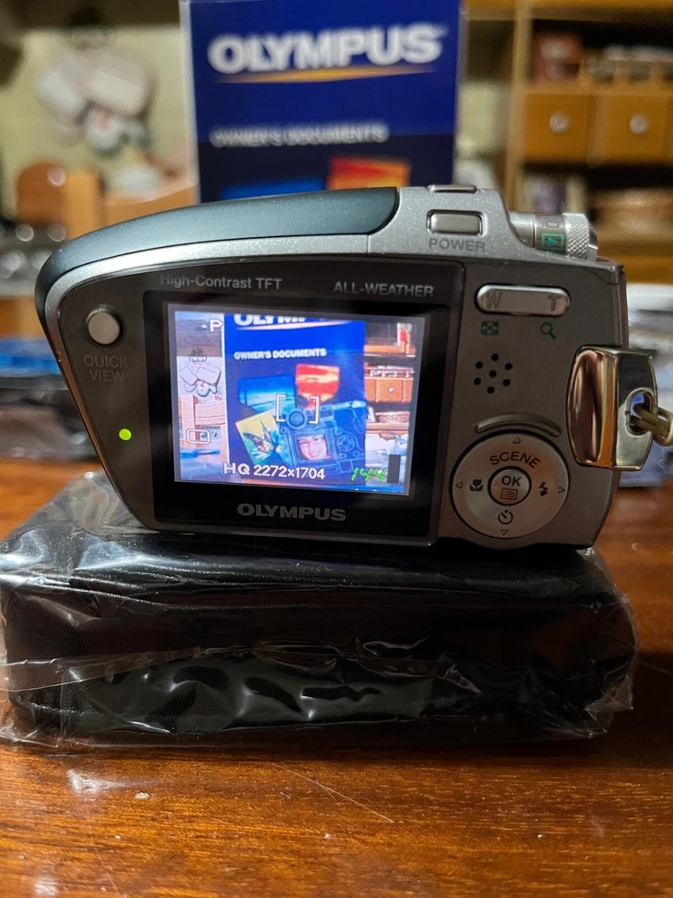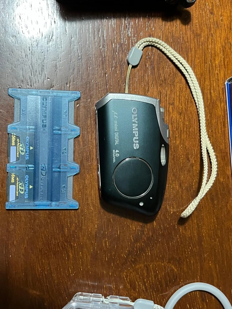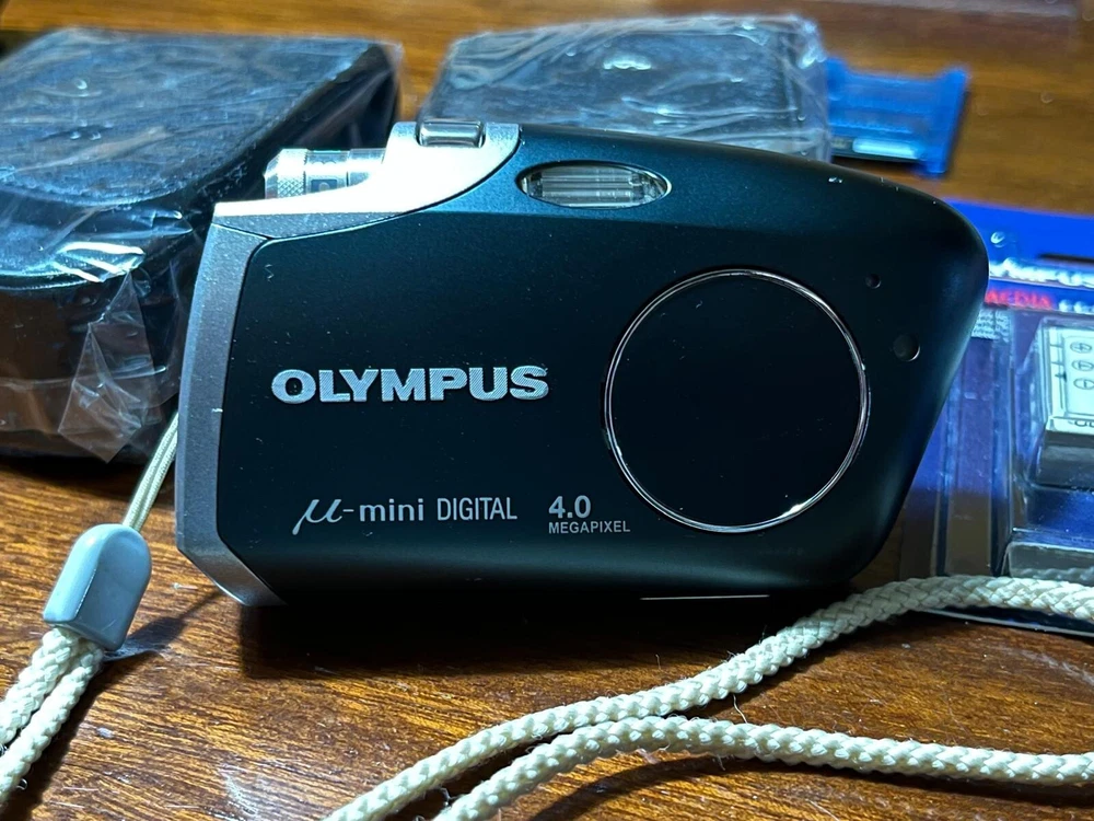 Olympus Mju mini DIGITAL 4MP 2X Zoom Compact Digital Camera. Conosciuta anche come: Stylus Verve Digital - Vintage Digital Camera. Digital camera dal design unico ed ultra compatto introdotta da Olympus nel 2004. Completamente testata e funzionante, super accessoriata. Viene fornita con: - 4 batterie (di cui 3 nuove imballate mai , usate) - 2 schede di memoria XD Picture (256mb e 16mb) e porta schede - 3 custodie (di cui 2 nuove mai usate come da foto) - caricabatterie - custodia subacquea (nuova mai usata) - cavo dati USB La fotocamera è in ottime condizioni, tenuta maniacalmente, presenta solo piccoli graffi visibili sulla parte anteriore e qualche piccolo segno di usura come si vede nelle foto. Lo schermo è perfetto e l'obiettivo è eccellente.