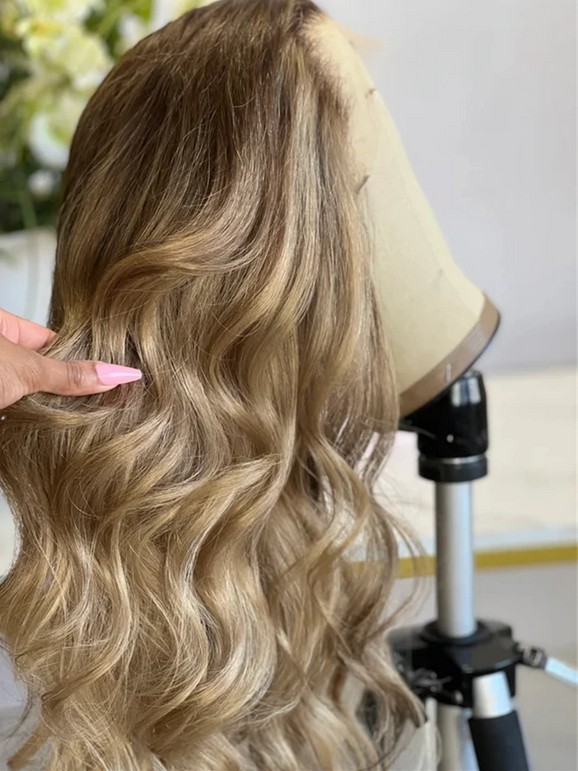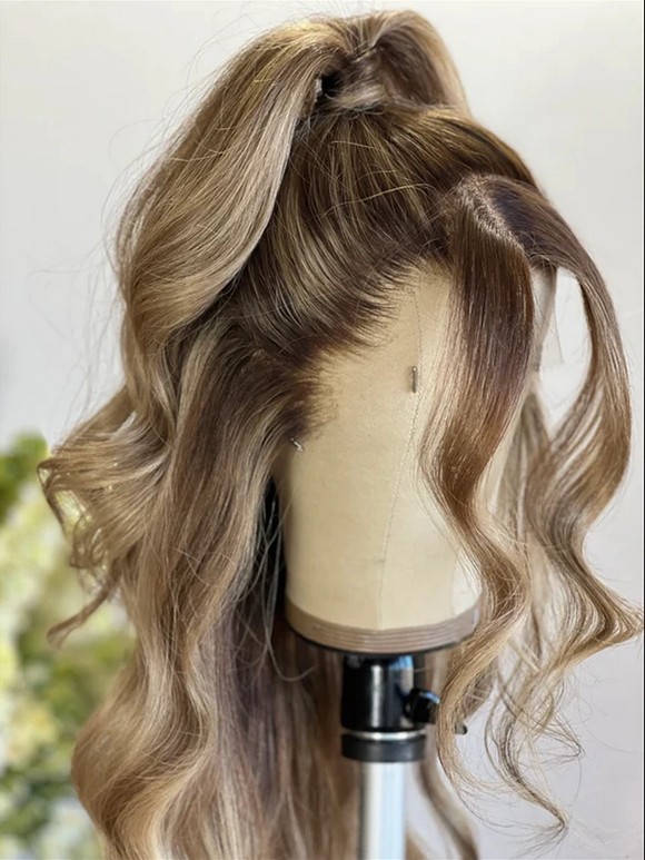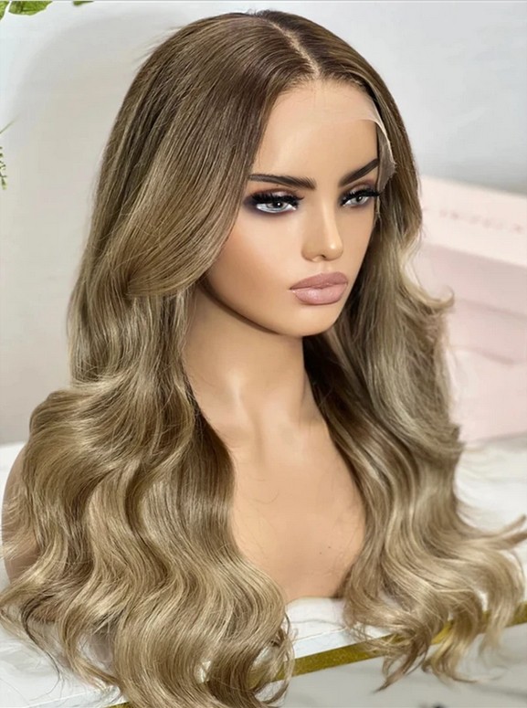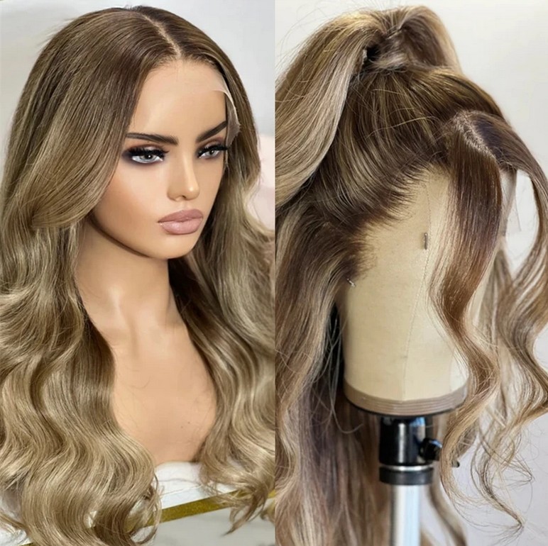 Ombre Brown Blonde Highlights 13x4 Lace Front Human Hair Wig for Women