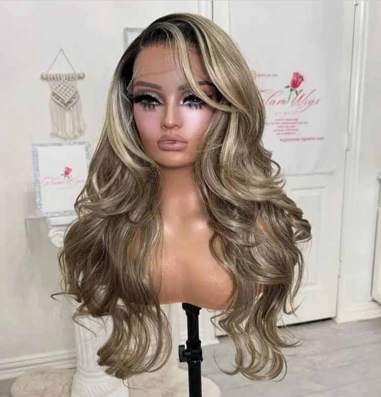 Ash Blonde Highlight Wave 100% Human Hair Wig 13x4 Lace Front Wig