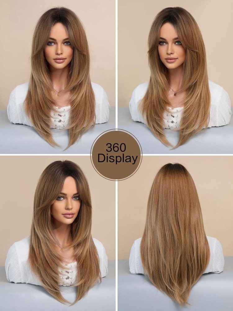 Ombre Brown Layered Wig For Women Long Straight Wigs With Curtain Bangs Synthetic High Density Heat Resistant Fiber Hair Wig For Daily Party Use 24 Inch / 64 Cm ✨ Elegant and Natural Look: This ombre brown wig features a beautifully blended color transition, soft curtain bangs, and a layered cut for a voluminous and sophisticated style. Whether for daily wear or a special event, this wig adds effortless charm to your look. 🌟 Premium Heat-Resistant Fiber: Made from high-density synthetic fibers, this wig offers a soft, realistic texture while remaining lightweight and durable. It can be styled with heat tools (up to 150°C/300°F) to match your personal style. 💎 Comfortable and Secure Fit: Designed with an adjustable and breathable cap, this wig ensures a snug and comfortable fit for extended wear. The high-density fibers provide a full and natural appearance. 📏 Specifications: Length: 24 inches / 64 cm Style: Long straight with layered cut and curtain bangs Color: Ombre brown Material: Heat-resistant synthetic fiber Density: High-density for a fuller look Occasions: Ideal for daily wear, parties, or casual outings Shipping Information: Processing Time: Each wig is custom-made and will be shipped within 3 business days. Delivery Time: Standard shipping takes approximately 7–9 business days. Note: Since each wig is crafted to order, minor delays may occur. We appreciate your patience. Why Choose Us? High-quality, fashionable wigs designed for natural beauty. Soft, heat-resistant fibers for versatile styling and long-lasting wear. Excellent customer support for a seamless shopping experience. Enhance your style with this stunning ombre brown wig. Order now and enjoy a flawless, trendy look!