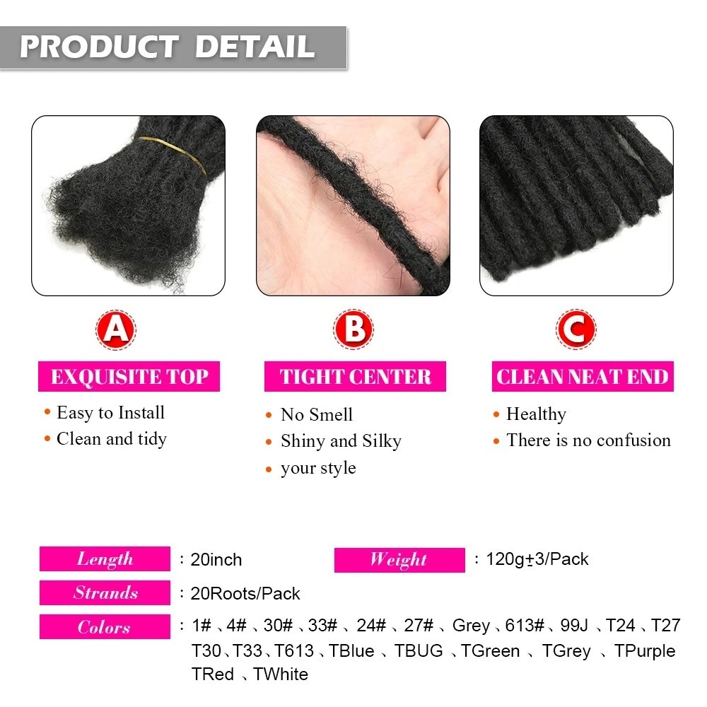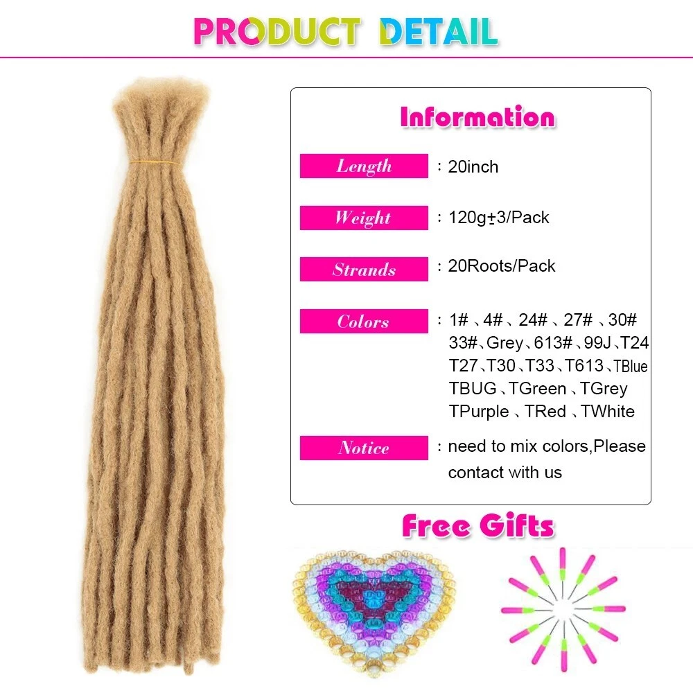 Synthetic Dreadlocks Crochet Braids 10-20Inch Ombre Braiding Wig Hair Extensions Achieve bold, stylish dreadlocks with these 10-inch Synthetic Dreadlocks Crochet Braids. Handmade and crafted for a natural look, these ombre locs are perfect for men and women seeking a trendy hip-hop style. Designed for easy installation, they provide a comfortable, lightweight option for adding length and volume to your hair. Whether for everyday wear or special occasions, these crochet braids offer a sleek, fashionable look with the convenience of wig extensions. Perfect for anyone looking to enhance their hairstyle with a unique and vibrant ombre effect. Specification: Item: Hair Styling Accessories Type: Synthetic Dreadlocks Crochet Braids Material: High Temperature Fiber Length: 10/20inch Weight: 60g for20roots Color Type: Piano Color Feature: Hip-Hop Style For Men And Women Ombre Braiding Usage: Hair Styling Accessories Package Included: 1 x Pc Dreadlocks Crochet Braids