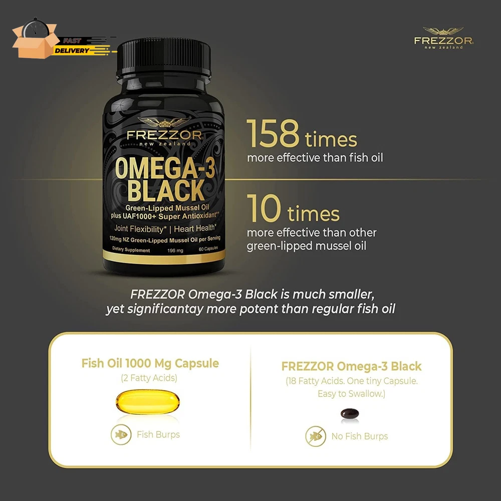 Store New Arrivals Add to Favorite View Feedback Contact Omega 3 Black for Joint Care & Comfort - New Zealand Green Lipped Musse Description Unit Count 60 Count Primary Supplement Type Green-Lipped Mussel Oil Is Discontinued By Manufacturer No Product Dimensions 1.97 x 1.97 x 3.54 inches; 1.45 ounces Item dimensions L x W x H 1.97 x 1.97 x 3.54 inches Product Benefits Joint & Muscle Support Item Weight 0.04 Kilograms Age Range (Description) Adult Package Information Bottle Flavor Natural Item Form Softgel Size 60 Count (Pack of 1) JOINT COMFORT: Independently tested and proven to be the most potent joint health supplement in its class. In recent a scientific study, FREZZOR OMEGA-3 BLACK Capsules was shown to be 53 TIMES more EFFECTIVE than the other mussel oil competitors or other essential fatty acids supplements. SMALL BUT MIGHTY: Easy to swallow soft-gel supplement for Joint Comfort and Mobility. No unpleasant fish burps, gluten-free, GMO-free. Our greenlip mussel supplements are much smaller than bulky fish oil capsules, easier to consume and are significantly more potent. INDUSTRY LEADING: We achieve this improved effectiveness with our new ultrasonic, cold-extraction process (patent-pending), which is more efficient at extracting the essential bioactive compounds. We control the entire extraction and production process of the green lipped mussel extract; from sustainably farmed New Zealand mussels to the extraction of green lipped mussel oil. The greenshell mussel is found only in New Zealand. INDUSTRY LEADERSHIP: The Founder of FREZZOR Inc, Noel Turner is the Pioneer of New Zealand's Green-Lipped Mussel Industry with over 50 years of experience in the processing and extraction of NZ Green-Lipped Mussel. Noel personally ensures you get the best quality and most biologically active green lipped mussel oil to assist with joint comfort and mobility. Studies show that on average, it takes about 3 months for levels of omega-3's to reach a balance within the body. If after 3 months, FREZZOR OMEGA-3 BLACK hasn't worked, email us, send us the empty bottles and we will provide you a full refund. We have full confidence in the effectiveness of our product that we stand behind it 100%; we want you to share in our experiance and buy with confidence. Please keep product under 90 degrees fahrenheit or 32 degrees celsius. MOVEMENT & JOINT MOBILITY. It can be hard to maintain an active lifestyle with the demands of modern living. This lack of exercise and physical activity places stress on joints and lessens our mobility. FREZZOR Omega-3 Black greatly assists with increasing joint mobility to allow you to do the activities you have been wanting to do for years. HEALTHY INFLAMMATION MANAGEMENT. A healthy immune system with a controlled inflammatory response is essential to our survival. Still, this process sometimes spirals out of control and needs our help. FREZZOR Omega-3 Black contains one of the most powerful, natural anti-inflammatories on the planet. - we have filed a patent because it is that good! INNER FITNESS & HEALTHY GUT. A hectic, high-pressure lifestyle impacts the quality of our food and overall gut health, leading to low energy and dysfunctional wellbeing. Optimal health generally starts with a healthy gut and well-balanced gut bacteria. FREZZOR Omega-3 Black, combined with whole organic food, clean water, and regular exercise, helps restore optimal health and lifts energy. ABOUT US We offer the best prices around on high quality products. Our E-store includes media such as books, movies, music and games while offering electronics, toys, sporting apparel, clothing, tools, general home, garden items and more. SHIPPING We are always working hard to ensure your package arrives as soon as possible. Please understand that some factors like weather, high postal traffic, and the performance of shipping companies are outside of our control. We offer free shipping to the lower 48 states and ship within 2 business days of payment, usually sooner. We do not accept P.O. Boxes. Please provide a physical address. For shipping outside of the continental USA, we only use eBay's Global Shipping Program.The item is shipped to KY and then sent to the rest of the world. International customers are responsible for all duties and taxes. Continue to check out in order to calculate costs for shipping the item to your country. Messages regarding eBay's Global Shipping Program MUST be directed at eBay EXCLUSIVELY. RETURNS We offer a 30-Day Return Policy on items which you are not completely satisfied with. You have the option for a full-refund or an exchange of the item. No returns are available on items shipped outside of the USA. PAYMENT We accept PayPal. CONTACT US This page content is yet to come Please ad us to your favorite seller and visit again later Thank You CUSTOMER SATISFACTION We try our very best to make sure every customer is completely satisfied. If there's a problem, message us! We're happy to help. WE ACCEPT Copyright © 2021 AutoDS. | All Rights Reserved