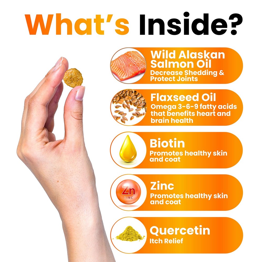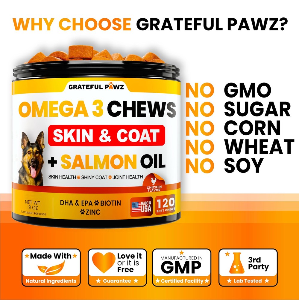 vitaminas para perros Itchy treats bites ultra premium natural large small medium puppy puppies senior canine dino krill vitamin e treat chew dandruff pet 3 6 9 pills powder tabs tablets capsules liquid hair loss aller immune prevention stop growth biotin defence scratch coconut oil natural pets lab vite remedies pet dyno enzymes tabs care liquid shirt spray hemp aid vets gut test greens shampoo antihistamine paws puppy puppies senior old small large big medium lb zesty anti pet test ruff Itch & Dog Allergy Relief: Containing important amounts of flax seed oil and Alaskan salmon oil, our skin and coat supplement for dogs is packed with Omega 3, 6 and 9, DHA and EPA, as well as biotin and zinc for your dog’s long-term health! Soft and Shiny Coat: These omega 3 fish oil for dogs chews promote a stronger, shinier and healthier looking coat all year round, helping minimize shedding and providing seasonal or occasional allergy relief! Healthy Skin: Say goodbye to hot spots, excessive itchiness, redness and licking, as well as dry itchy skin which hinders your dog’s comfort on a daily basis! This dog omega 3 supplement can help reduce scratching, constant licking and skin issues Made in USA: Unlike similar products on the market, these dog vitamins for skin and coat allergies are made with 100% safe all-natural ingredients, containing no nasty GMOs, artificial fillers, preservatives, colors or flavors! Joint, Heart & Immune Support: This dog shedding supplement comes in the form of an easy to digest, delicious chicken flavored chew, perfect for picky eaters!