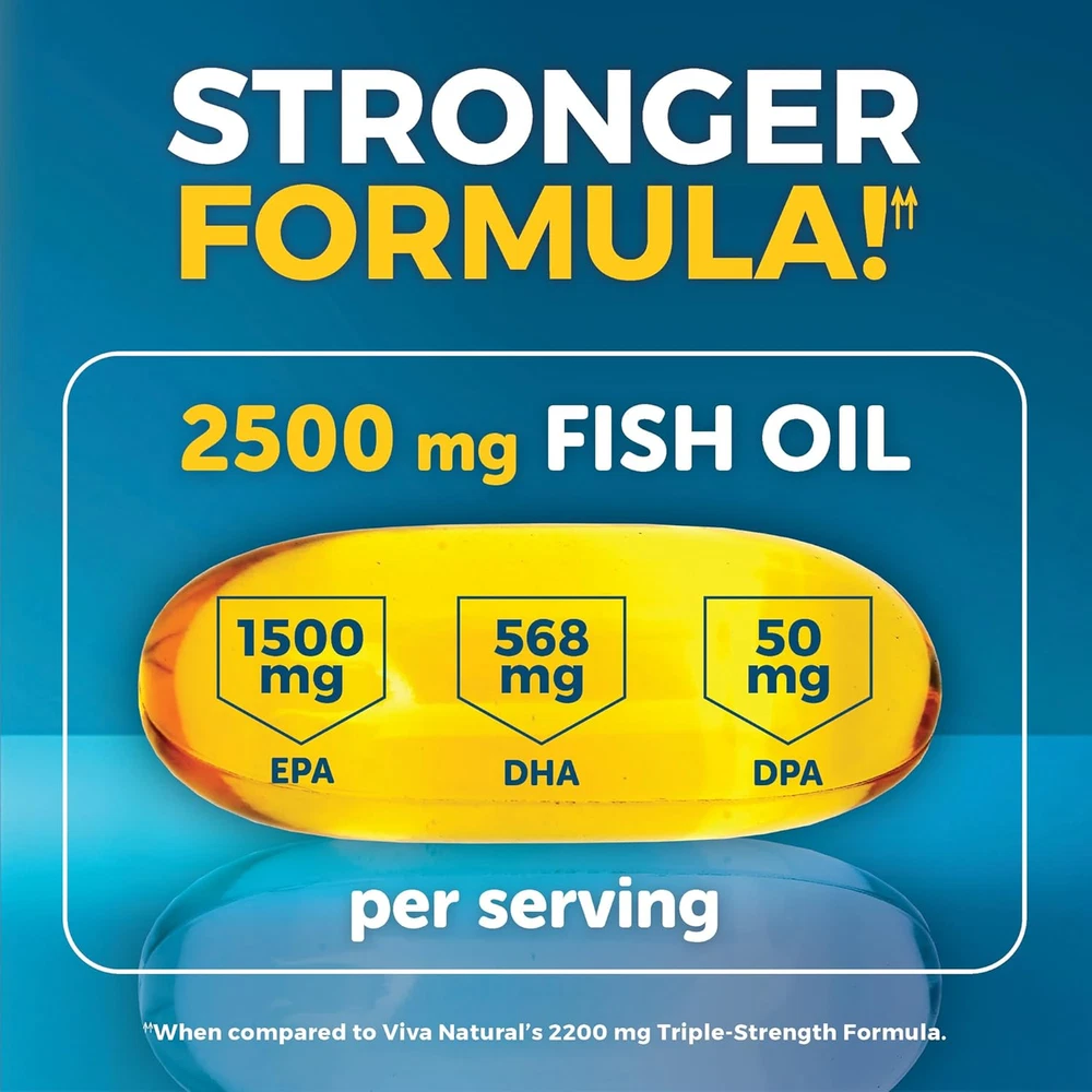 Menu Other Items Feedbacks About Us Contact Us Add To Favorites Omega 3 Fish Oil Supplement - 2500 Mg Triple Strength Fish Oil Pills with Re-Est Triple Strength Omega-3 Fish Oil - Our fish oil for men and women delivers 3X the omega-3s compared to what you get with some other fish oil supplements. Each serving provides 2,500 mg of fish oil, including 1,500 mg EPA, 568 mg DHA and 50 mg DPA Omega-3 for Heart, Brain, Skin & Eye Health* - Science has shown that not only do the omega-3s in fish oil offer cardiovascular support for men and women, but they also support brain health, and help keep your skin and eyes healthy as you age* Purified to Reduce Mercury - Our fish oil uses a combination of fish (sardines, anchovies and mackerel), and is purified to reduce PCBs, dioxins and furans, and mercury to ensure levels are below IFOS set limits of ≤45 ppb, ≤ 1 ppt and ≤ 0.1 ppm respectively For Greater Absorption - The omega 3 fatty acids in our fish oil capsules are delivered in re-esterified triglyceride form. Triglycerides have been shown to be more easily absorbed by your body. This helps you get the most out of every serving Quality You Can Trust - Our fish oil is made with wild caught fish using sustainable fishing practices. Our fish oil softgels are IFOS Certified and Labdoor Certified for quality, purity and potency, and are also gluten-free, Non-GMO and pescatarian-friendly Product Description The video showcases the product in use. The video guides you through product setup. The video compares multiple products. The video shows the product being unpacked. 1 Benefits 2 Supplement Facts 3 Absorption 4 Wild-Caught 5 Quality What makes Viva Naturals Fish Oil so popular? Viva Naturals Fish Oil has a 90% Omega-3 concentration making it a phenomenal value. It comes in the superior triglyceride form and is from wild and sustainably caught fish. What type of fish is used to make Viva Naturals Fish oil? Our Fish Oil is made from wild-caught anchovies, sardines and mackerel from the pristine waters in the Pacific and Atlantic Ocean. Our wild-caught fish are sourced using sustainable fishing practices to ensure the health of the ocean's ecosystem. How much Omega-3, EPA, DHA is in each serving? Each serving of 2 softgels contains: Fish oil - 2500 mg Omega 3’s - 2,250 mg EPA - 1500 mg DHA - 568 mg & DPA - 50 mg Our Triple-Strength Omega-3 Fish Oil contains a leading 90% omega-3 concentration in the triglyceride form for superior Complete Your Wellness Regimen With These Recommended Products Add to Cart Add to Cart Add to Cart Add to Cart Add to Cart Add to Cart Customer Reviews 4.6 out of 5 stars 11,435 4.6 out of 5 stars 11,435 4.7 out of 5 stars 52,539 4.7 out of 5 stars 2,166 4.5 out of 5 stars 4,723 4.5 out of 5 stars 587 Price $56.95 $ 56 . 95 $34.95 $ 34 . 95 $24.51 $ 24 . 51 $24.95 $ 24 . 95 $19.99 $ 19 . 99 $21.95 $ 21 . 95 Product Benefits Support Heart & Brain Health* Supports Heart & Brain Health* Supports Immune Health* Supports Collagen Production* Traditional Joint Support* Supports Joint Health* Days Supply 90 45 60 250 30 30 Serving Size 2 Softgels 2 Softgels 2 Capsules 1 Capsule 3 Tablets 3 Capsules Count 180 Softgels 90 Softgels 120 Capsules 250 Capsules 90 Tablets 90 Capsules Item Form Softgel Softgel Capsule Capsule Tablet Capsule Item Specification Unit Count 180.00 Count Primary Supplement Type Omega-3 fatty acids, Total Omega-3 fatty acids, DHA, EPA Is Discontinued By Manufacturer No Product Dimensions 3.15 x 3.15 x 6.1 inches; 13.62 ounces Country of Origin USA Item dimensions L x W x H 3.15 x 3.15 x 6.1 inches Product Benefits function(f) {var _np=(window.P._namespace("DetailPageProductOverviewTemplatesJava"));if(_np.guardFatal){_np.guardFatal(f)(_np);}else{f(_np);}}(function(P) { P.when('A').execute(function(A){ A.on('a:truncate:po-attribute-truncate-9:updated', function(data) { var isTruncated = !data.truncateInstance.getIfTextFits(); var seeMoreElement = document.getElementById('po-attribute-see-more-id-9'); if(seeMoreElement) { seeMoreElement.style.display = isTruncated ? '' : 'none'; } }) }); })); Brain Health Support; Joint Health Support; Supports Healthy Cholesterol Levels; Heart Health Support See more Item Weight 386 Grams Special Ingredients Non-GMO Fish Oil Diet Type Gluten Free Flavor Unflavored Item Form Softgel Size 180 Count (Pack of 1) Dimensions Shipping Returns Additional Info Product Dimensions: 3.15 inches x 3.15 inches x 6.1 inches. Weight: 386.0 grams Fast shipping is very important for us. Our standard shipping service is FREE. Your order will be shipped within 1-3 business days upon full payment received. Most items are delivered within 3-5 business days, however, please allow 3-10 business days. We are shipping only to USA. We only ship to the confirmed Paypal address. We reserve the right to cancel any order for any reason at any time. We are not responsible for undeliverable addresses. We offer a 30 day return policy from checkout winning date. Your satisfaction is guaranteed! If for any reason you are unhappy with your item, just return it within 30 days for a full refund, minus shipping cost. Please contact us prior to initiating a return so that we can issue you a refund authorization. Items defective upon receipt must be packaged in their retail packaging as if new and returned with a detailed description of the problem. Return shipping fees are not refundable. We reserve the right to decline any returns if the above guidelines are not followed. All of our items, unless otherwise stated, will only run on 120 volts. Please check to make sure your country complies with these specifications. If you have a problem or question regarding your transaction please contact us before leaving any type of feedback. We will work with you to resolve any problem you may have.
