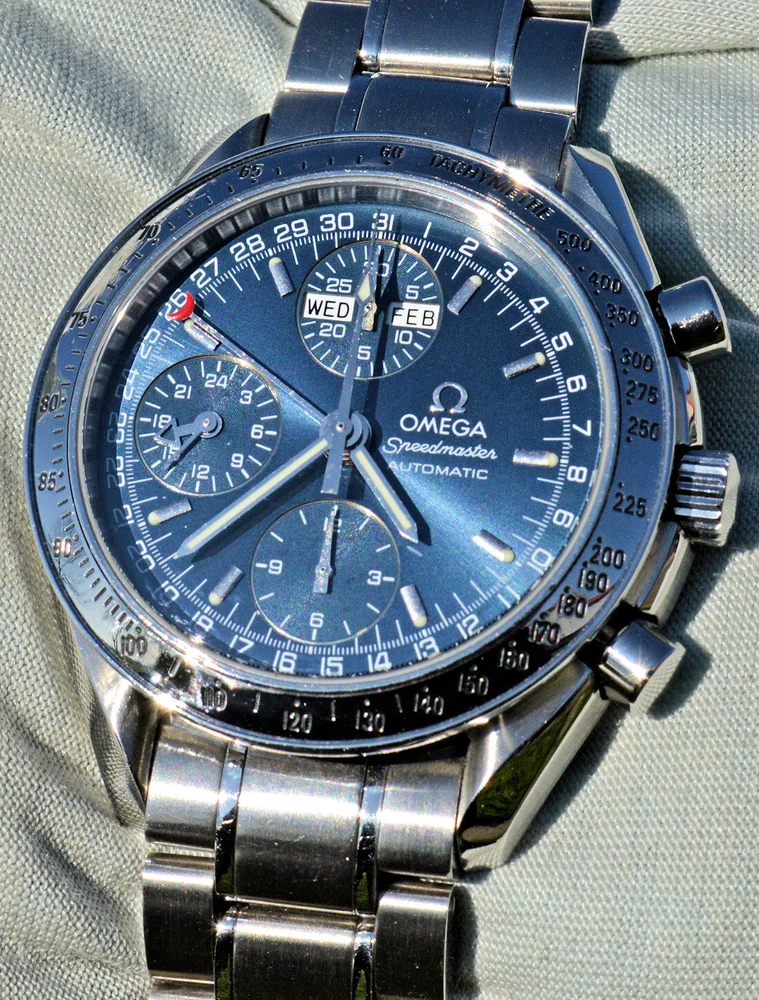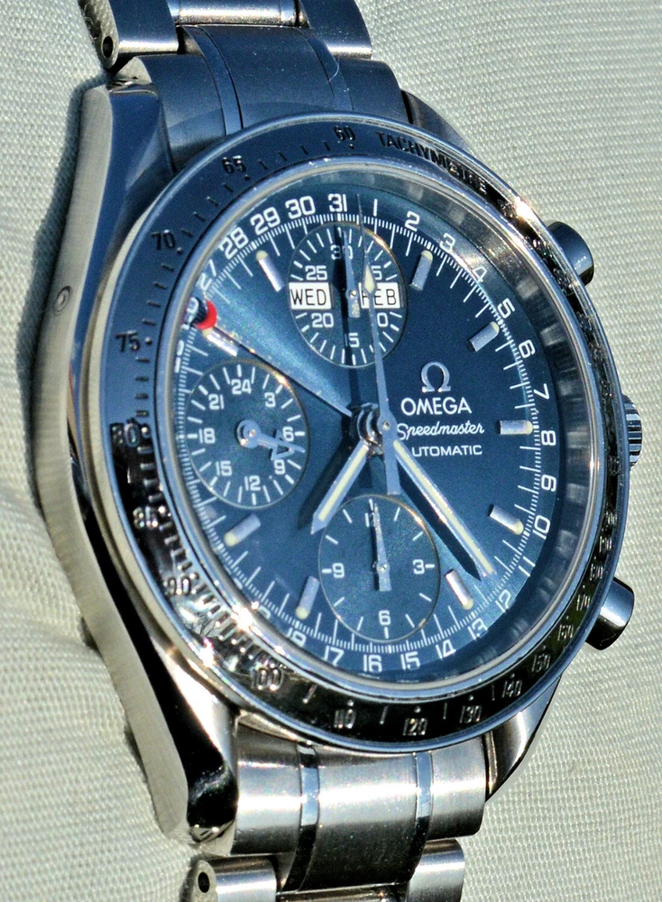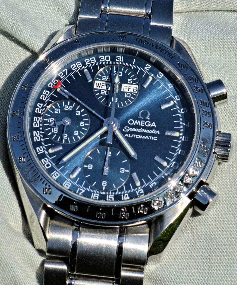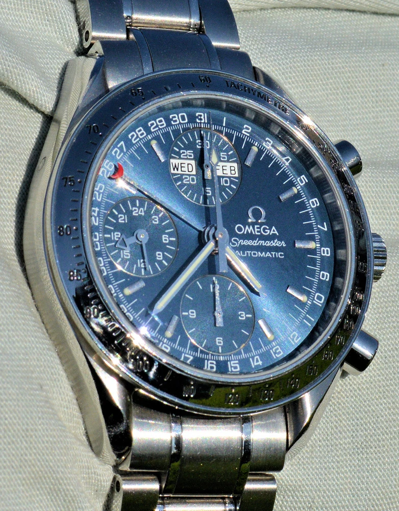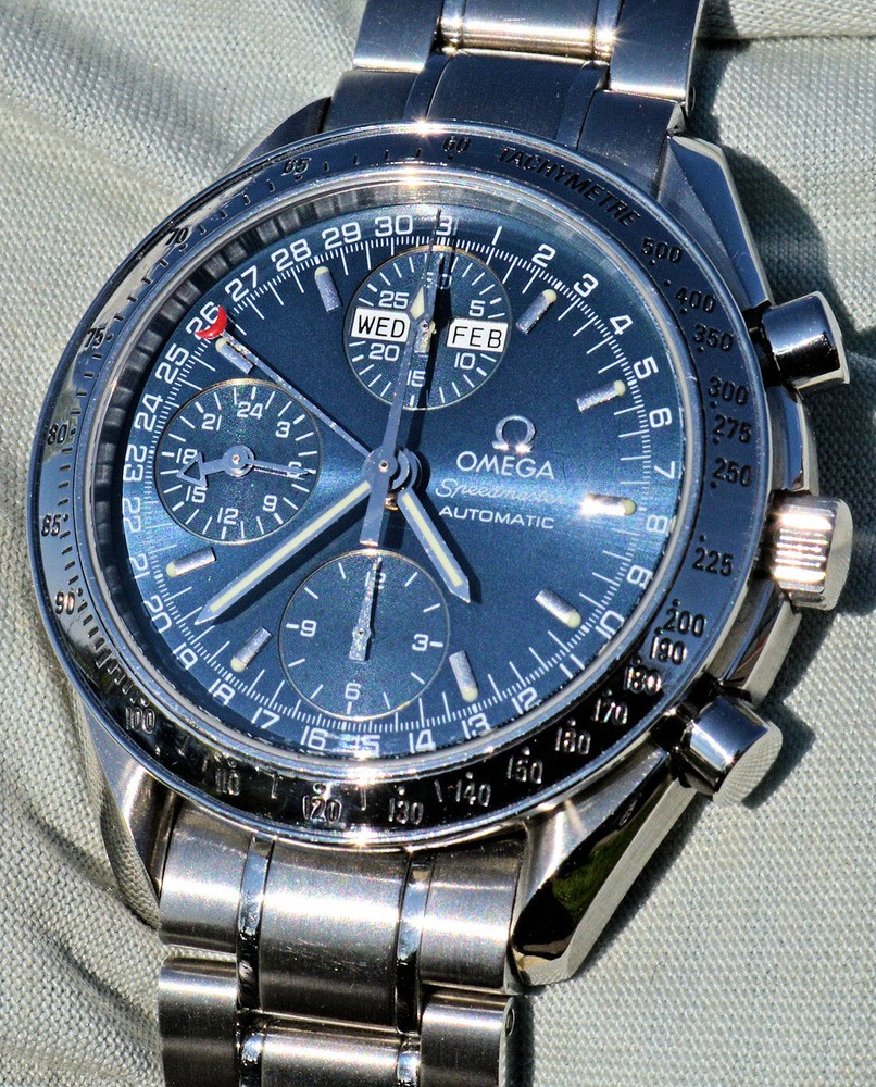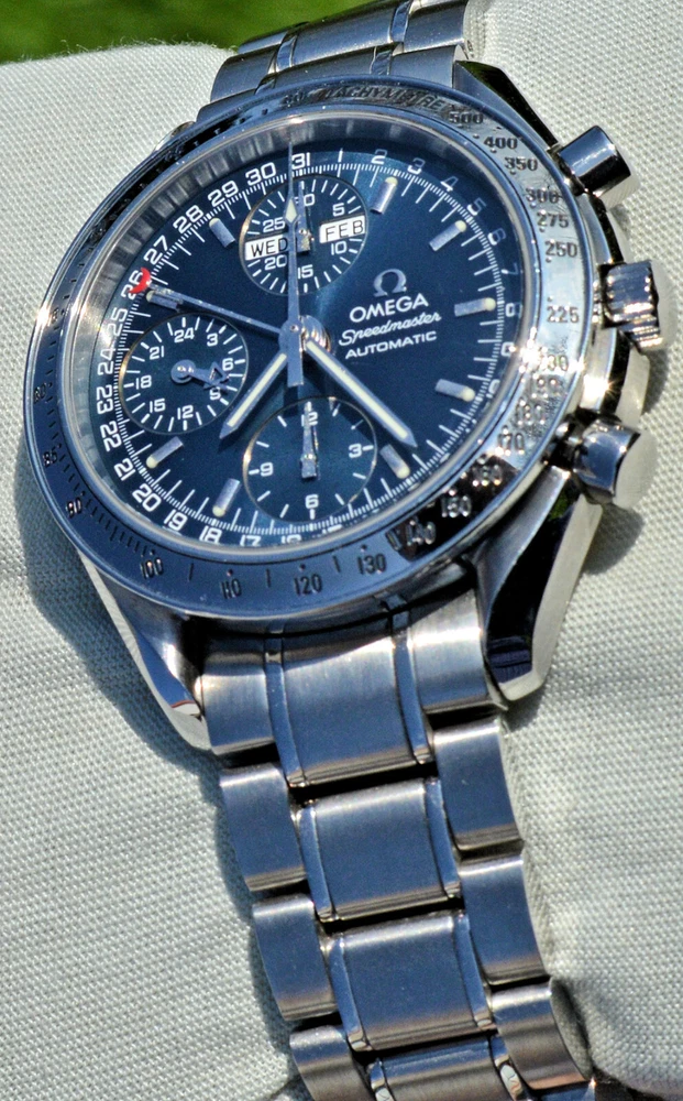 Condizione 1 (ottimo - Orologio con scatola originale ) - Chronograph Omega Speedmaster Day Date del 2003 ma ancora come nuovo, referenza commerciale OMEGA 3523.80.00 , tutto in acciaio inossidabile, completamente originale. L'orologio è eccellente in tutte le sue parti, è ancora come nuovo, non sono presenti segni visibili. Diametro 39 mm. escluso la corona originale, il quadrante blu è bellissimo. Movimento Omega automatico calibro 1151, pulitissimo e perfettamente funzionante, referenze all'interno del fondello 175.0084. Il vetro zaffiro antiriflesso è perfetto. Il bracciale con chiusura a scomparsa è completo di tutte le sue maglie, quindi adatto anche a polsi grandi. L'orologio viene fornito con scatola (leggermente rovinata nella parte esterna, vedi foto), controscatola, porta garanzia in pelle, libretto istruzioni, originali Omega come vedete in foto. VISTO IL PERFETTO FUNZIONAMENTO DEL MOVIMENTO, FORNIRO' PERSONALE GARANZIA SCRITTA DI CORRETTO FUNZIONAMENTO, VALEVOLE PER MESI 24. Garantisco la massima serietà e veridicità dell’oggetto. Riepilogo caratteristiche Genere: Orologio da uomo/Unisex Carica: Automatico colore del Quadrante: Blu Materiale della cassa: Acciaio Materiale cinturino: Acciaio Anno di produzione: 2003 Colore cinturino: Acciaio Chiusura: Déployante coperto Materiale chiusura: Acciaio Larghezza ansa (mm): 18 Larghezza fibbia (mm): 16 Cassa Diametro (mm): 39 Altezza (mm): 14 Vetro: Vetro zaffiro Numeri sul quadrante: Arabi Materiale lunetta: Acciaio Calibro Calibro/Meccanismo: 1151 Calibro di base: Numero delle pietre: Oscillazione: Funzioni: Cronografo, Calendario a 12 mesi, Data, Indicatore del giorno settimanale, Indicatore dei mesi, Tachimetro . Altro: Piccoli secondi, Cronometro, Lancette luminescenti, Impostazione rapida, Originale/pezzi originali, Indici luminescenti . Segni cassa appena visibili Segni quadrante appena visibili Segni lunetta appena visibili Segni Vetro assenti Segni Fondello appena visibili Segni bracciale e chiusura appena visibili Le fotografie sono attuali dell'oggetto in vendita. * * * * * INTERNATIONAL BUYERS ARE WELCOME ASK FOR SHIPPING QUOTE I accept paypal payment only from verify member * * * * *
