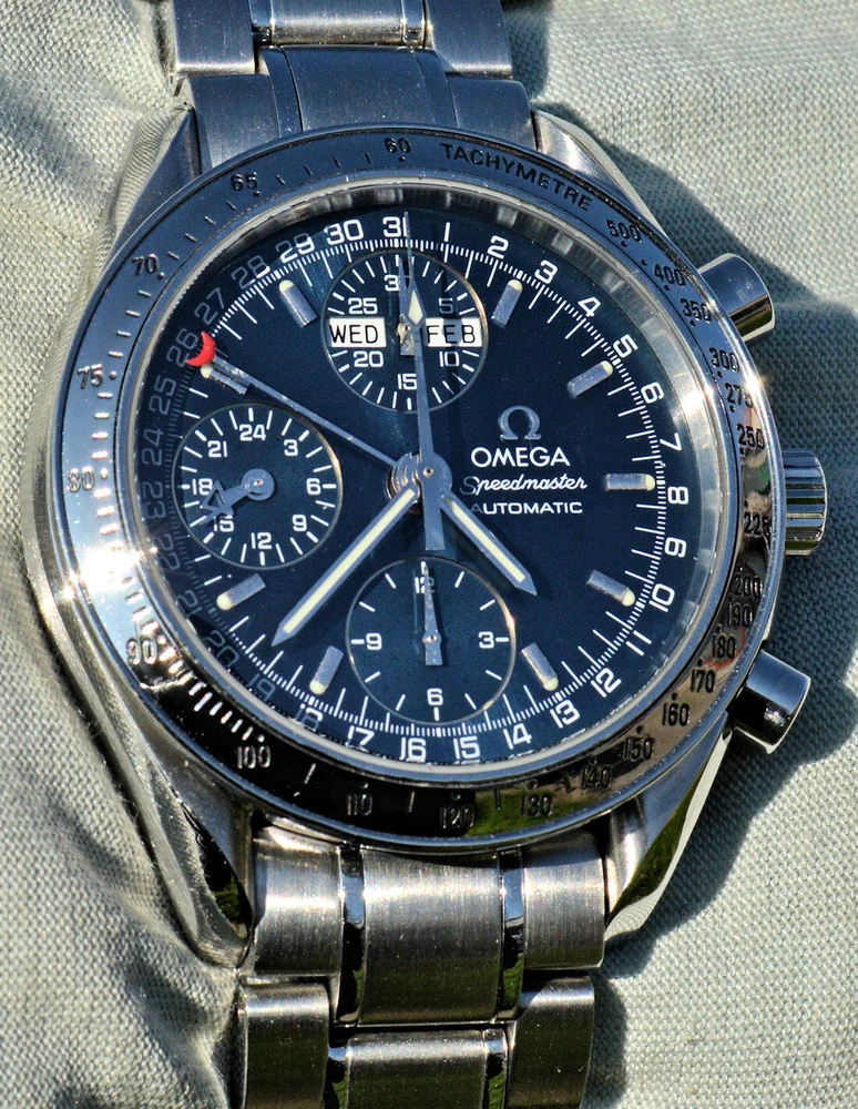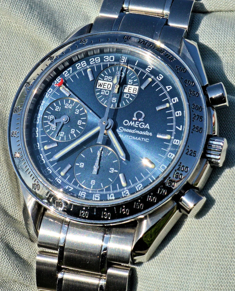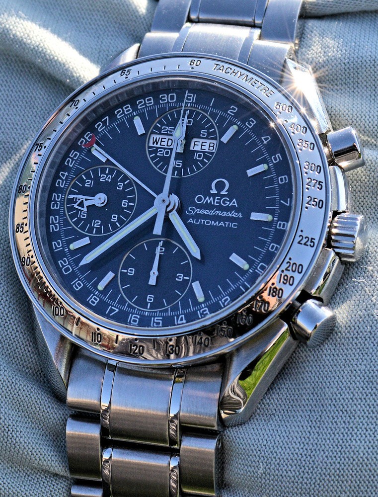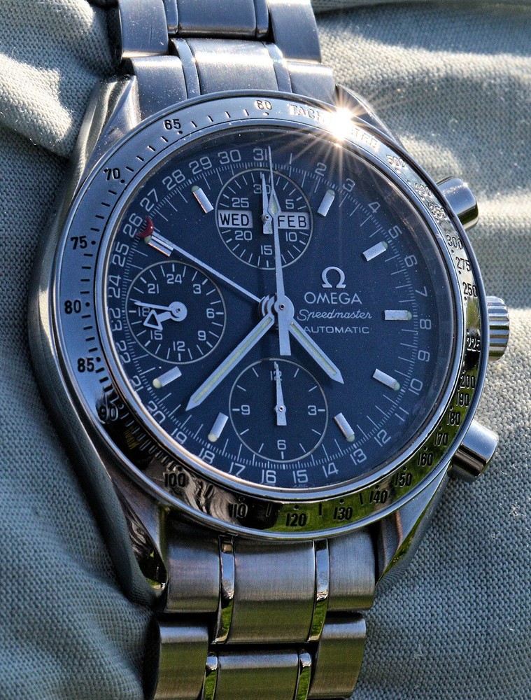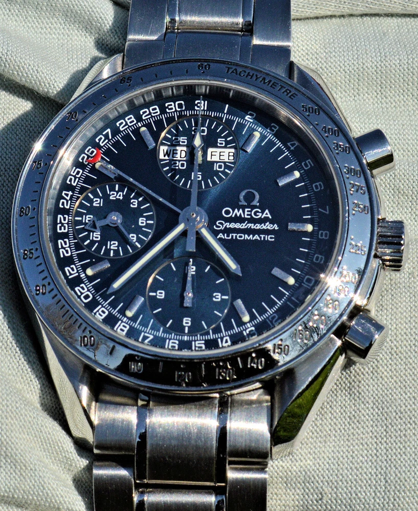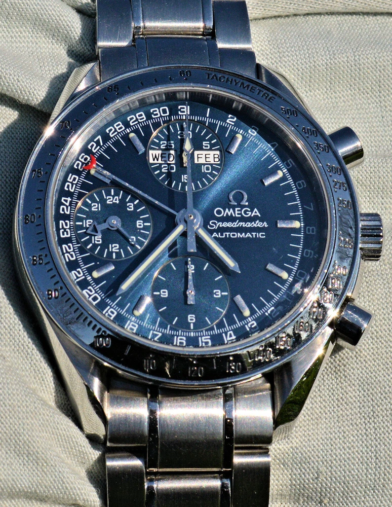 Condizione 1 (ottimo - Orologio con scatola originale ) - Chronograph Omega Speedmaster Day Date del 2003 ma ancora come nuovo, referenza commerciale OMEGA 3523.80.00 , tutto in acciaio inossidabile, completamente originale. L'orologio è eccellente in tutte le sue parti, è ancora come nuovo, non sono presenti segni visibili. Diametro 39 mm. escluso la corona originale, il quadrante blu è bellissimo. Movimento Omega automatico calibro 1151, pulitissimo e perfettamente funzionante, referenze all'interno del fondello 175.0084. Il vetro zaffiro antiriflesso è perfetto. Il bracciale con chiusura a scomparsa è completo di tutte le sue maglie, quindi adatto anche a polsi grandi. L'orologio viene fornito con scatola (leggermente rovinata nella parte esterna, vedi foto), controscatola, porta garanzia in pelle, libretto istruzioni, originali Omega come vedete in foto. VISTO IL PERFETTO FUNZIONAMENTO DEL MOVIMENTO, FORNIRO' PERSONALE GARANZIA SCRITTA DI CORRETTO FUNZIONAMENTO, VALEVOLE PER MESI 24. Garantisco la massima serietà e veridicità dell’oggetto. Riepilogo caratteristiche Genere: Orologio da uomo/Unisex Carica: Automatico colore del Quadrante: Blu Materiale della cassa: Acciaio Materiale cinturino: Acciaio Anno di produzione: 2003 Colore cinturino: Acciaio Chiusura: Déployante coperto Materiale chiusura: Acciaio Larghezza ansa (mm): 18 Larghezza fibbia (mm): 16 Cassa Diametro (mm): 39 Altezza (mm): 14 Vetro: Vetro zaffiro Numeri sul quadrante: Arabi Materiale lunetta: Acciaio Calibro Calibro/Meccanismo: 1151 Calibro di base: Numero delle pietre: Oscillazione: Funzioni: Cronografo, Calendario a 12 mesi, Data, Indicatore del giorno settimanale, Indicatore dei mesi, Tachimetro . Altro: Piccoli secondi, Cronometro, Lancette luminescenti, Impostazione rapida, Originale/pezzi originali, Indici luminescenti . Segni cassa appena visibili Segni quadrante appena visibili Segni lunetta appena visibili Segni Vetro assenti Segni Fondello appena visibili Segni bracciale e chiusura appena visibili Le fotografie sono attuali dell'oggetto in vendita. * * * * * INTERNATIONAL BUYERS ARE WELCOME ASK FOR SHIPPING QUOTE I accept paypal payment only from verify member * * * * *