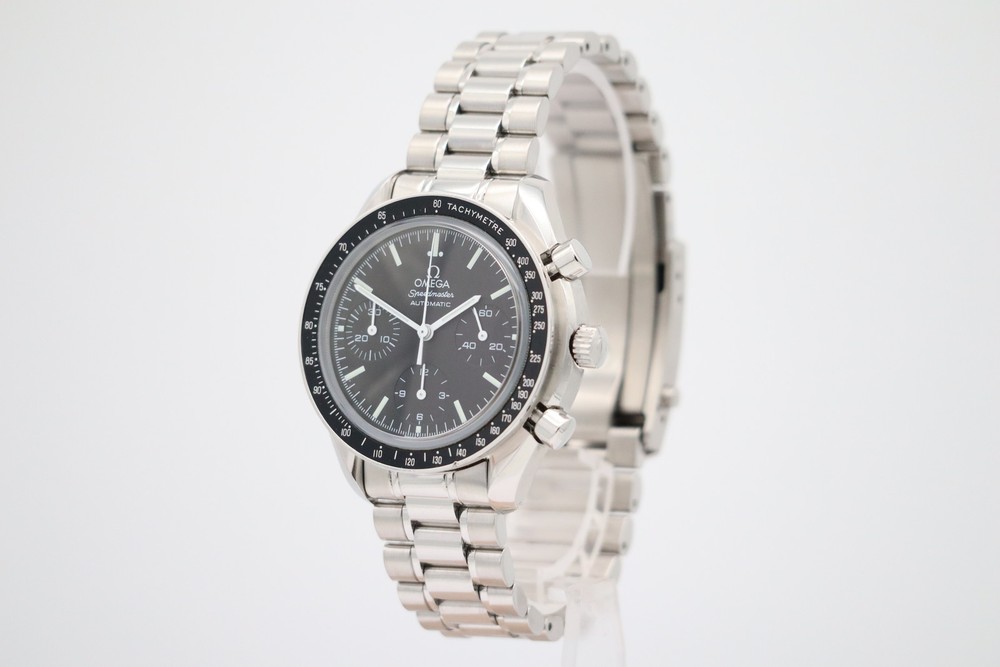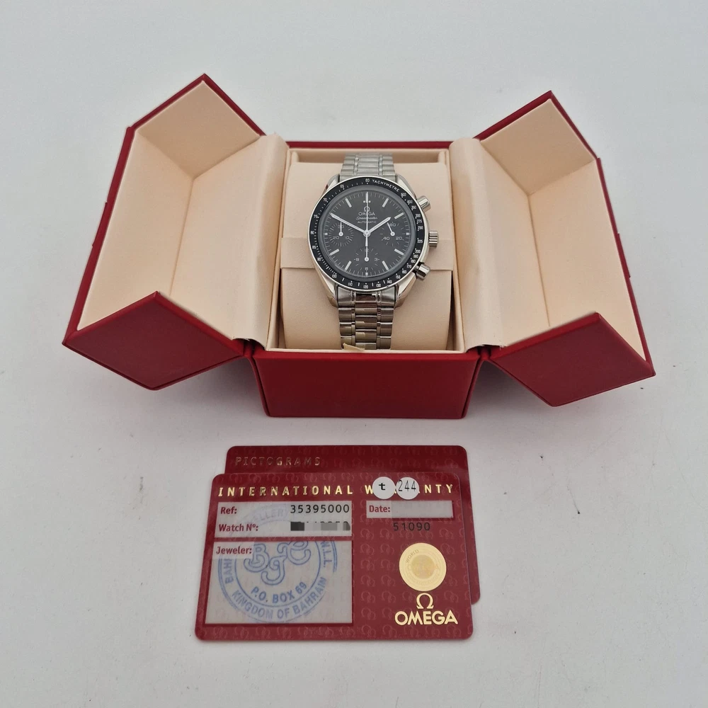 This Omega Speedmaster Reduced is a stunning timepiece—sleek 39mm size fits perfectly, and the automatic movement keeps precise time. Comes with papers and box, adding great value. The design is classic yet modern, making it versatile for any occasion. Excellent condition, feels luxurious on the wrist. Highly recommended for watch enthusiasts!