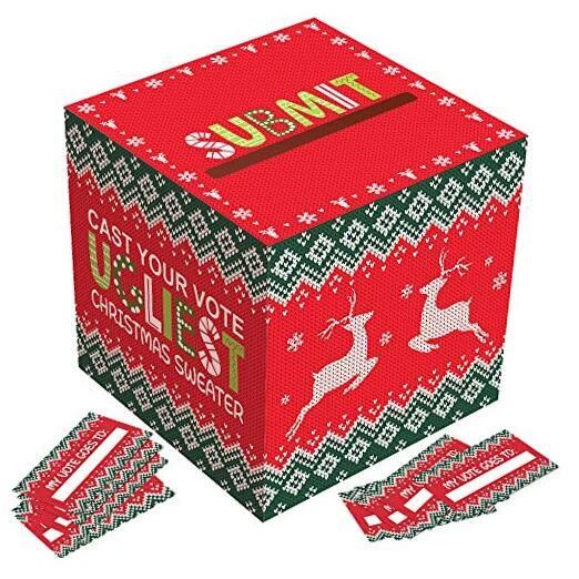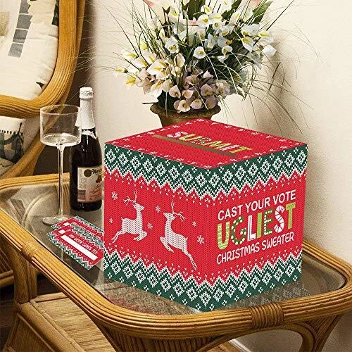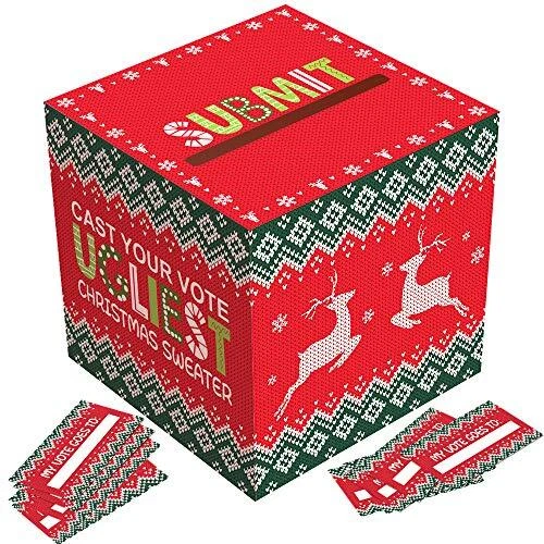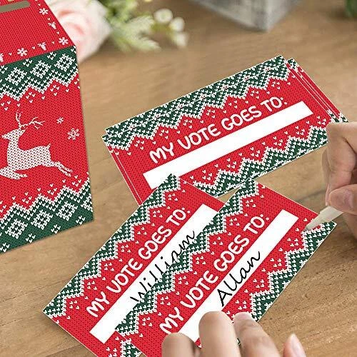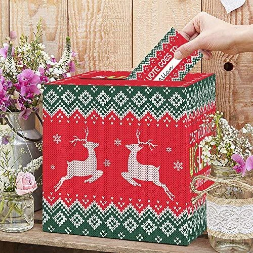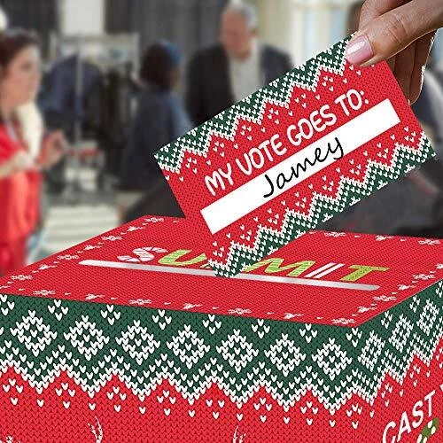 Omgouue Ugly Sweater Contest Ballot Box and Voting Cards Set For Christmas New