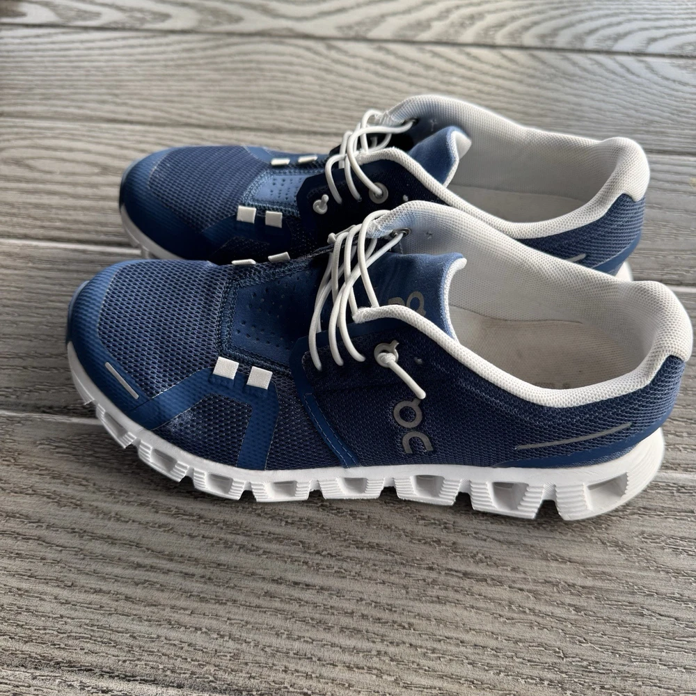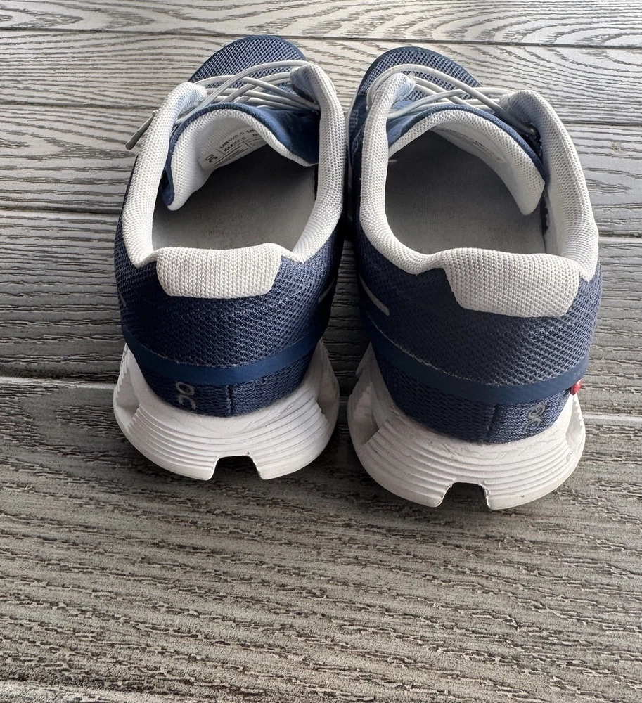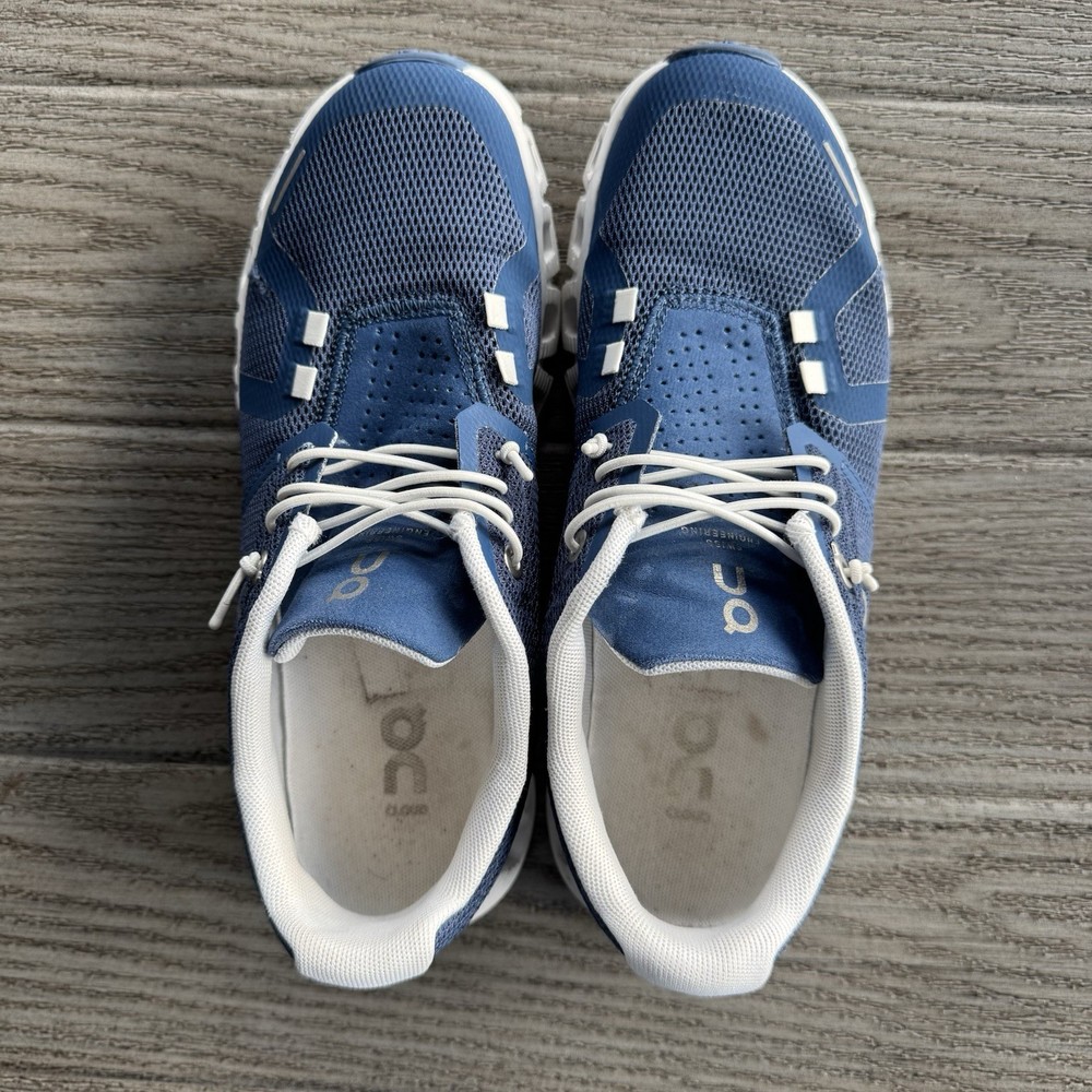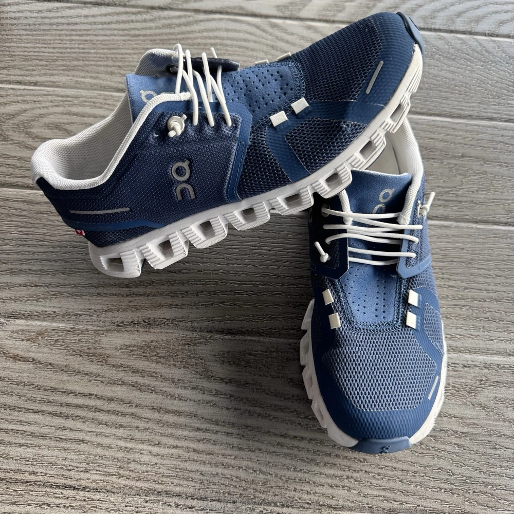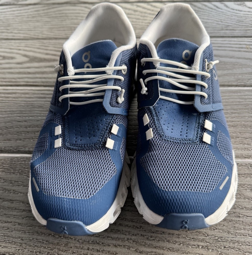 On Cloud 5 Women’s Road Running Shoes Size 6.5 Denim/Blue And White Speed Laces