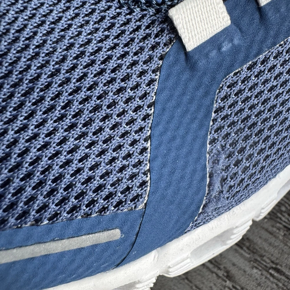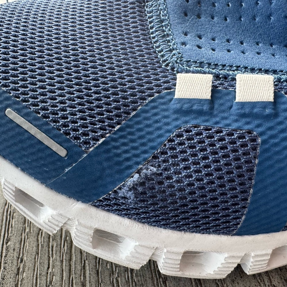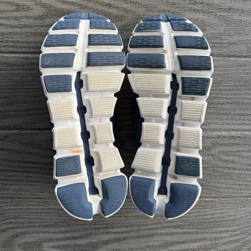 Step into comfort and performance with these On Cloud 5 Running sneakers, designed for lightweight support, breathable wear, and all-day comfort. Featuring ON’s signature CloudTec sole, these shoes deliver soft landings and responsive take-offs.—perfect for running, walking, gym workouts, or casual athleisure wear. Crafted with a breathable mesh upper and sleek blue design, they combine modern athletic style with functional performance. The elastic lace system allows for easy slip-on confidence and secure fit. Pre-owned, good condition. Light signs of wear consistent with normal use. Soles and uppers remain clean and structurally sound. Please review all photos for details.