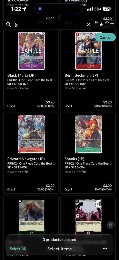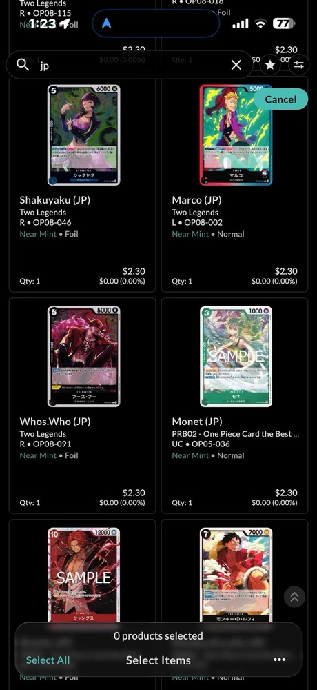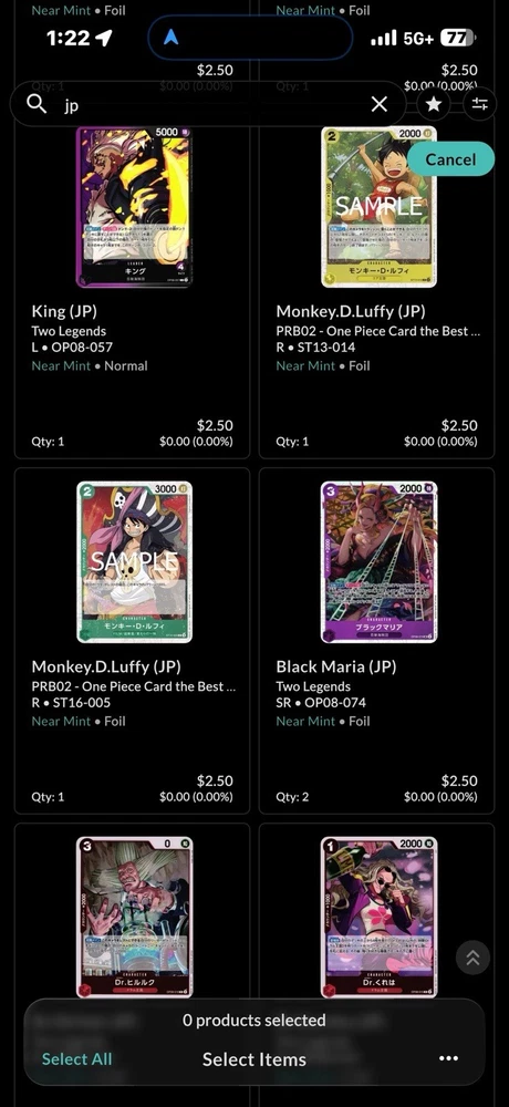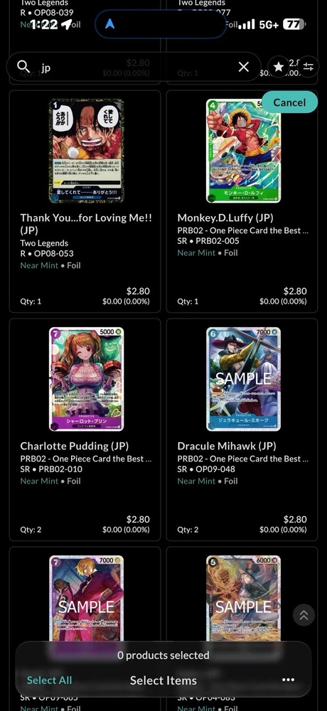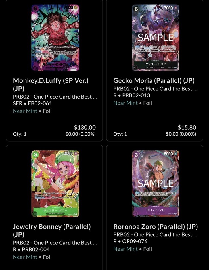 The One Piece Mixed Card JP Card lot contains around 470 cards featuring characters from the popular One Piece CCG. This collection includes a variety of Japanese cards, with a special Luffy SP card included for added excitement. 300 - common 123 - R/P/UC 53- SR 5 - SEC 1 - SP