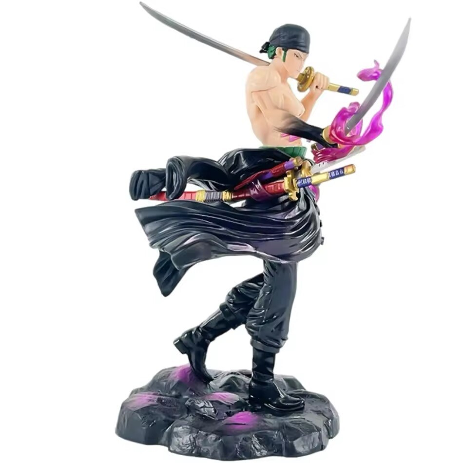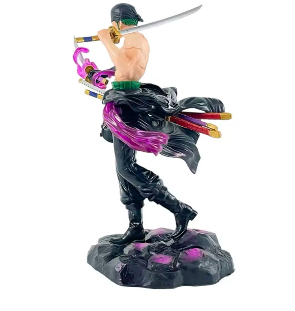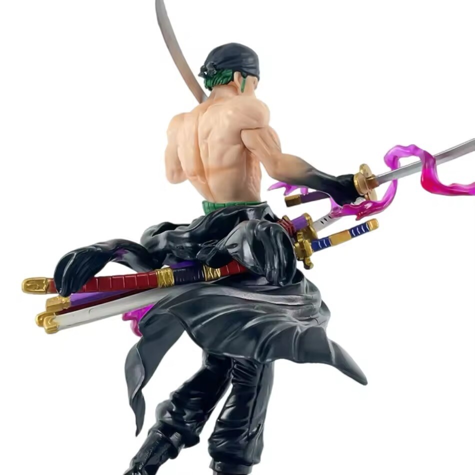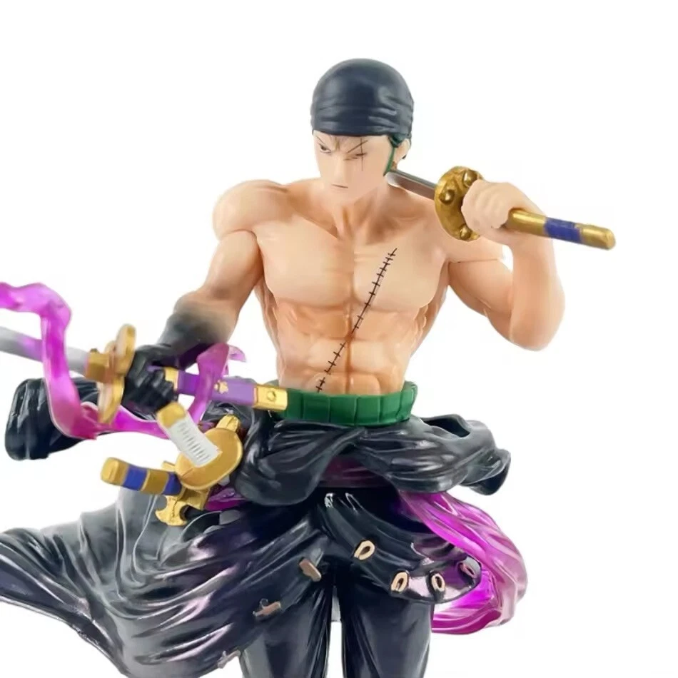 Add this Anime One Piece Roronoa Zoro Action Figure Model to your collection. This one piece figure is made of PVC material and features the iconic cartoon character, Roronoa Zoro. Perfect for fans of the popular anime and manga series, One Piece, this figure is a must-have for any collector. With its intricate details and high-quality construction, this figure is sure to impress. Whether you're a fan of cartoon and TV characters, comic book heroes, or animation in general, this figure is a great addition to any collection. Don't miss out on the chance to own this unique piece of One Piece memorabilia.