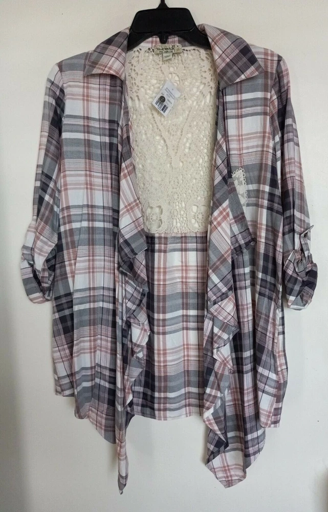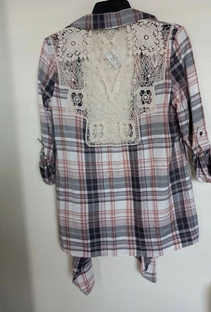One World Womens Cardigan Medium Plaid Lace Back Open Drape Front Waterfall NEW Armpit-armpit: 16" Sleeve Length 27" Length: 29" AT Combined Shipment: USA : Highest item shipping cost + $3.00. for each subsequent item.Or, you can purchase as many items as you choose and pay the flat rate of $ for your Priority Mail Large Flat Rate Box which covers your entire order. Please read the disclaimer below. INTERNATIONAL SHIPMENTS: Highest item shipping cost {+ Item weight.} for each subsequent item. Please read the disclaimer below. DISCLAIMER on Shipping Costs: Our intention is to keep our shipping costs as low as possible. However, depending on the item purchased (weight) and the destination, shipping rates can vary; especially 30 Day?s No Questions Asked Returns Policy: Your satisfaction is very important to us. We have a 30 days NO QUESTIONS ASKED returns policy. The item must be returned in the condition in which it was purchased. If there are labels/tags they should not be removed. If they are, the item will be sent back to you. ANY SHIPPING COSTS WILL NOT BE REFUNDED. BOTH WAYS, receiving and any returns. Please contact us for the return shipping address and authorization. ALL COMMUNICATIONS MUST BE IN WRITING & TAKE PLACE THROUGH THE EBAY SITE ONLY. No private direct email correspondence. A customer care rep. will respond to you within 24 hrs (Mon-Fri). Once we have received the merchandise and inspected it, please allow 72 hours for a refund to be issued. NO See my other listings for more great items! We accept PAYPAL. Also we have a virtual terminal with PayPal through which we can accept Visa, MasterCard, Amex, and Discover. If you do not have a PayPal account, it takes virtually minutes to open International shipments: PLEASE DO NOT PAY until we determine your shipping costs. Most of our items also have an International Flat-Rate. Although, if due to the destination or the weight we are unable to honor the rate mentioned in the item?s listing, we will cancel your order and leave you positive feedback. Usually we use the US Postal Service. The best international rate for an international shipment is First Class (up to 4 lbs.)If your items exceed 4 lbs. we may pack them into two separate packages (and notify you of this).You still are eligible to take advantage of the combined shipping rates, even if we have packed them into two separate packages. The fees for packaging, shipping, insurance, Customs Duty Charges on international shipments are all the responsibility of the Buyer and are not included in the purchase price. If the item(s) are gifts, we could indicate ?GIFT? on the customs form so you would avoid paying more on duty.