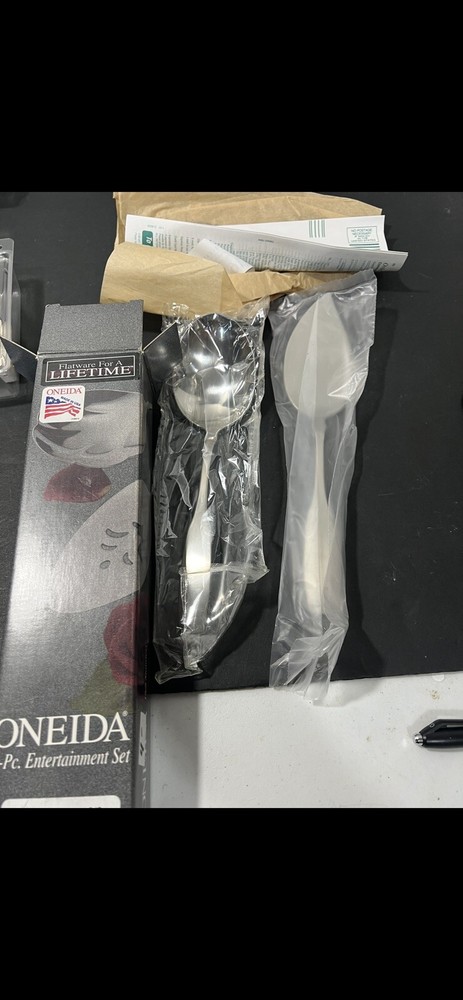 This vintage entertainment set by Oneida Community is a must-have for any collector or fan of classic flatware. The set includes pieces made of durable stainless steel, with a sleek and timeless design that is perfect for any occasion. The handles are also made of stainless steel, providing a comfortable and sturdy grip for easy use. The set features the iconic Paul Revere design, adding a touch of American history to any table setting. Whether you're hosting a formal dinner party or a casual family gathering, this flatware set is sure to impress. Add it to your collection today and enjoy the elegance and functionality of this stunning set.