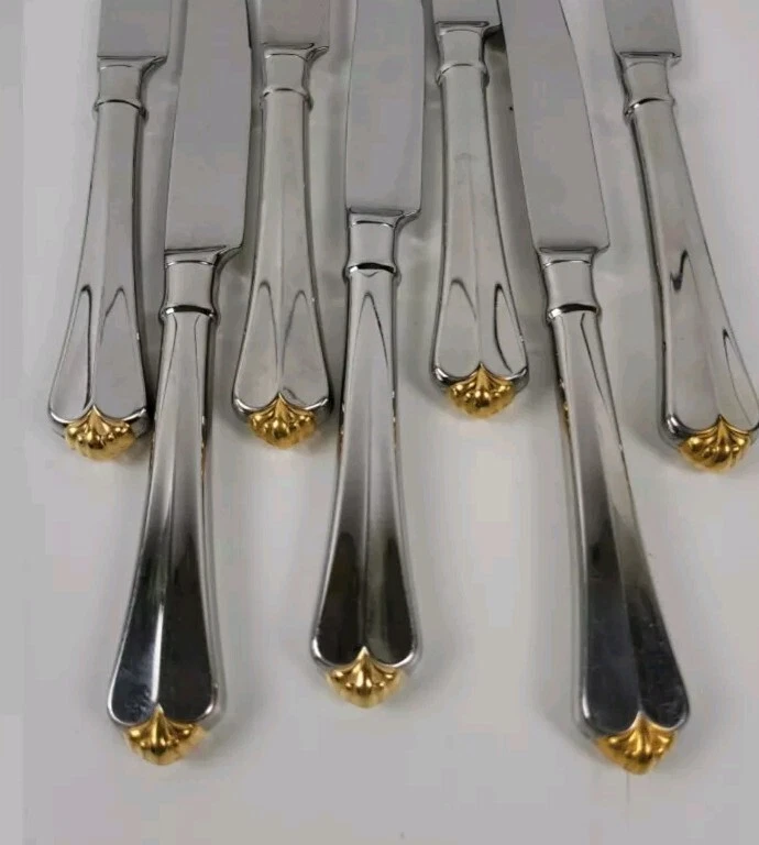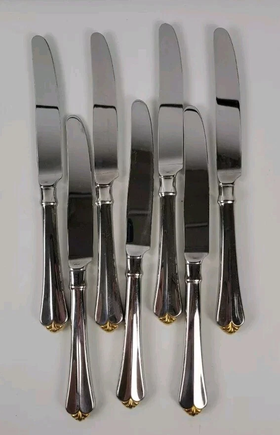 Oneida Cube Golden Juilliard Heirloom Stainless Flatware Dinner Knives Set of 7 SKU # V006