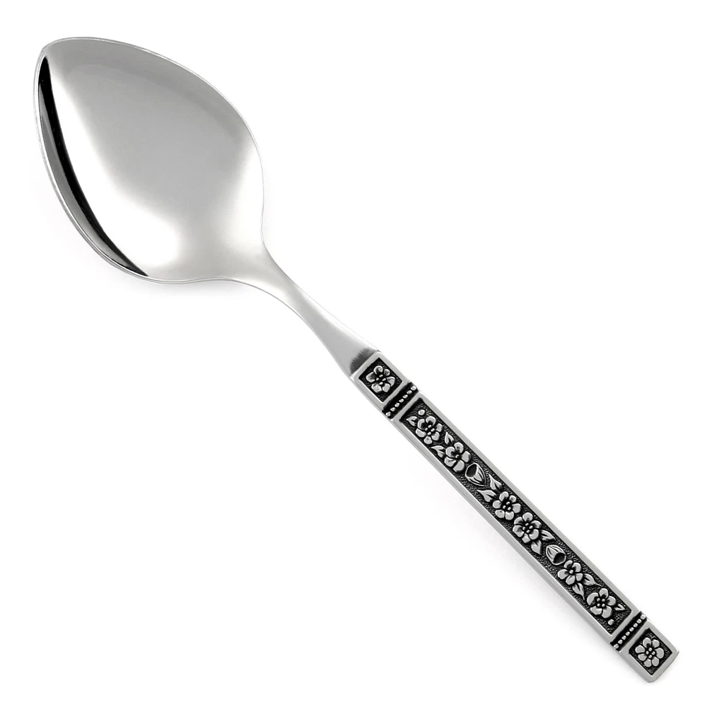 choice flatware Oneida Dominica Pieces Dinner Knife 9" Length 9" Handle Type Solid Handle Blade Type Modern Blade Place/Oval Soup Spoon 6 7/8" Length 6 7/8" Salad Fork 6 1/4" Length 6 1/4" Teaspoon 6 1/8" Length 6 1/8" Condition Statement Great condition with only light, minor scratches from common use. Marks WM A ROGERS DELUXE STAINLESS Oneida Ltd