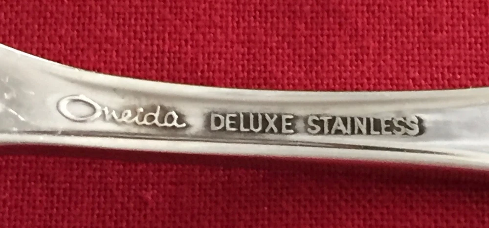 Manufacturer: Oneida Deluxe Pattern: Spanish Mood Type: Stainless Steel Piece: Salad Fork Length: 6 1/4" Add'l wear on tines, Structurally sound.