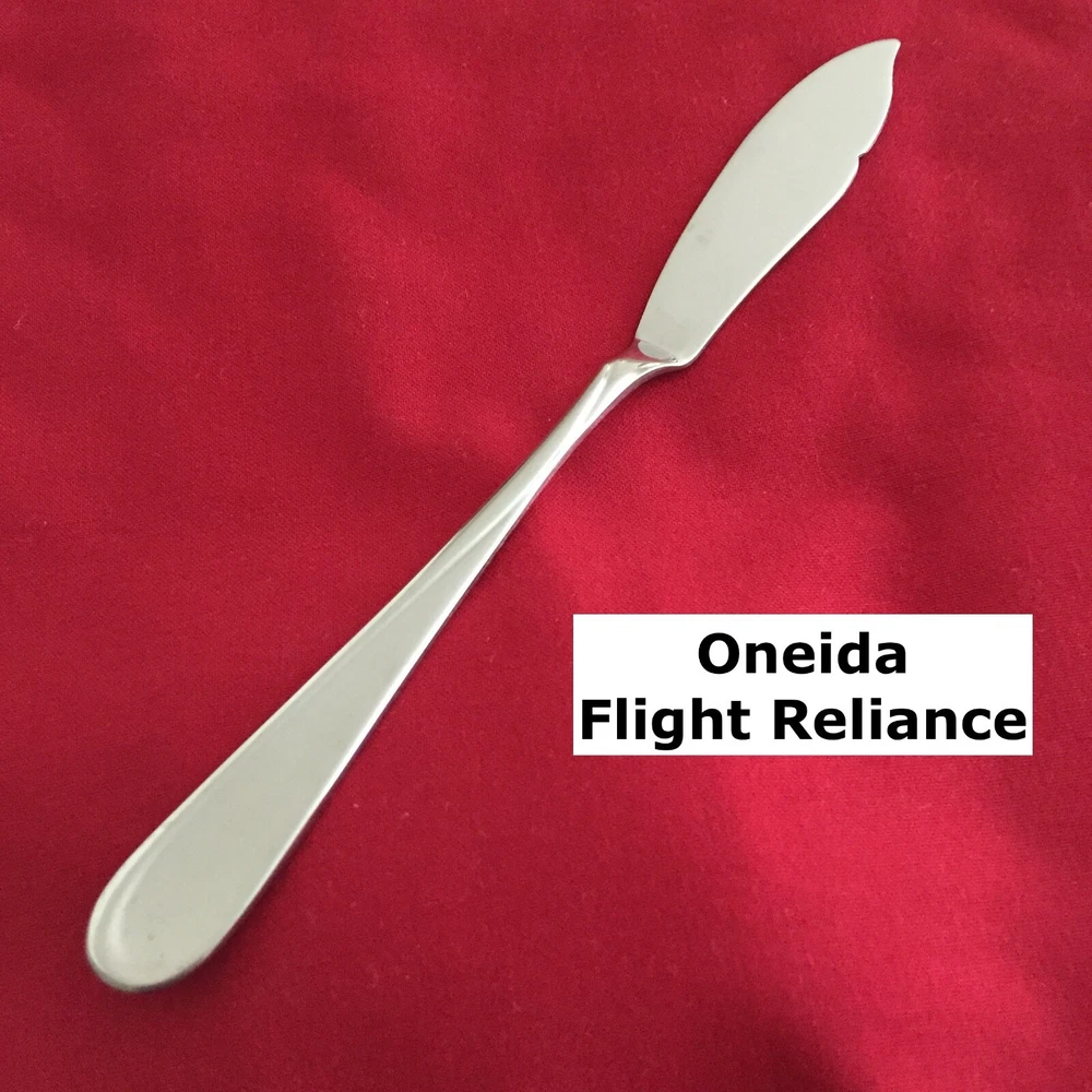 Manufacturer: Oneida Pattern: Flight Reliance Country of Manufacture: USA Type: Stainless Steel Piece: Master Butter Knife Length: 6 5/8"