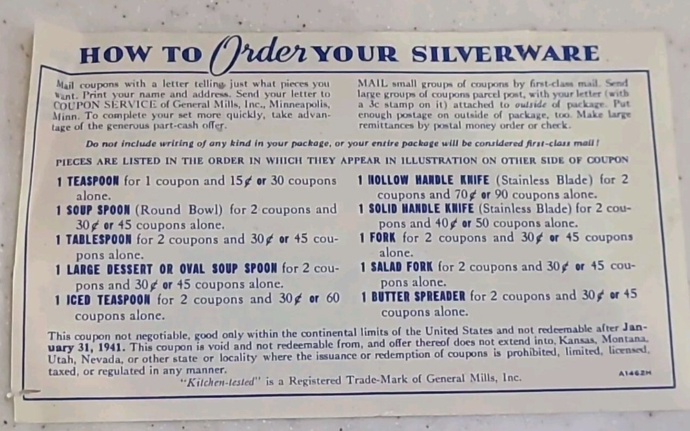 Brand:General MillsColor:Multi-colorDate of Creation:1940Original/Reproduction:OriginalType of Advertising:Paper couponCountry/Region of Manufacture:United States