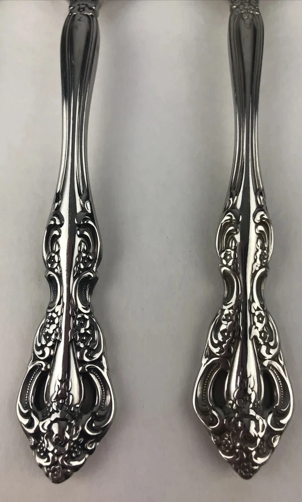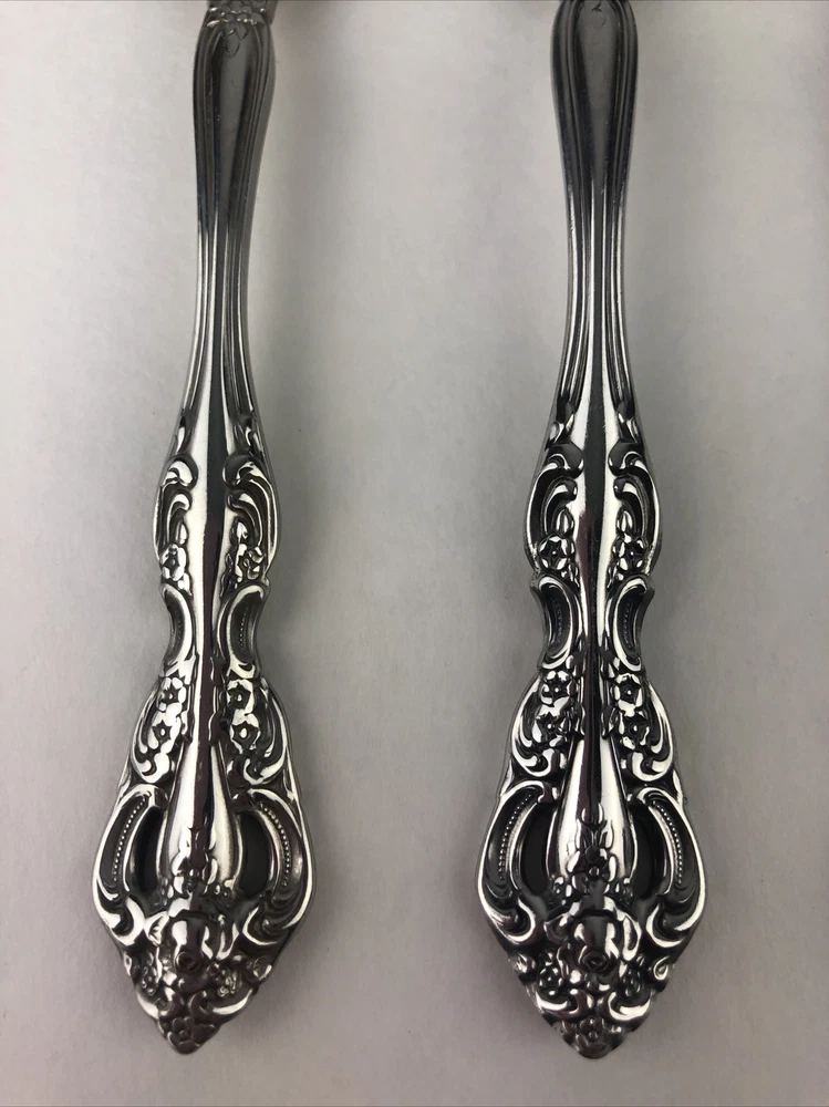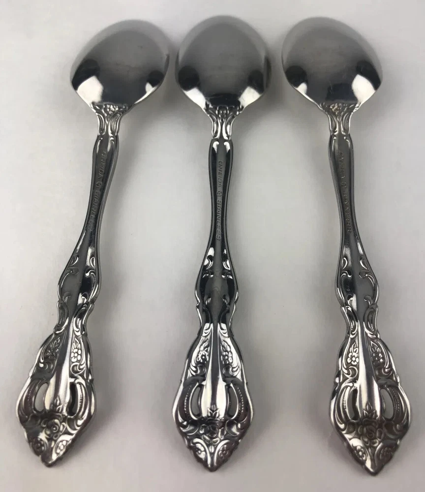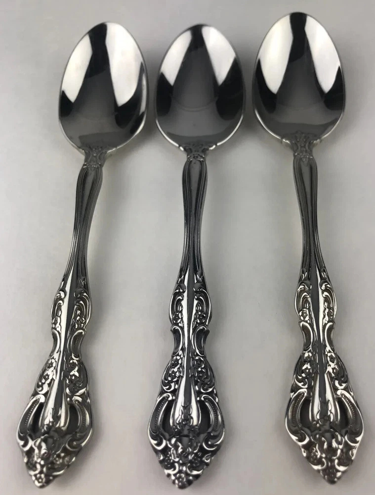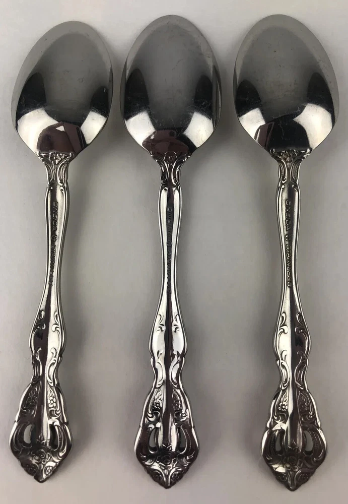 Oneida Michelangelo Cube Heirloom Stainless Flatware 3 Teaspoons Shows signs of light use and may need additional cleaning. Little spotting in places but no dishwasher or disposal damage. Please see pictures for details as this is part of my description.