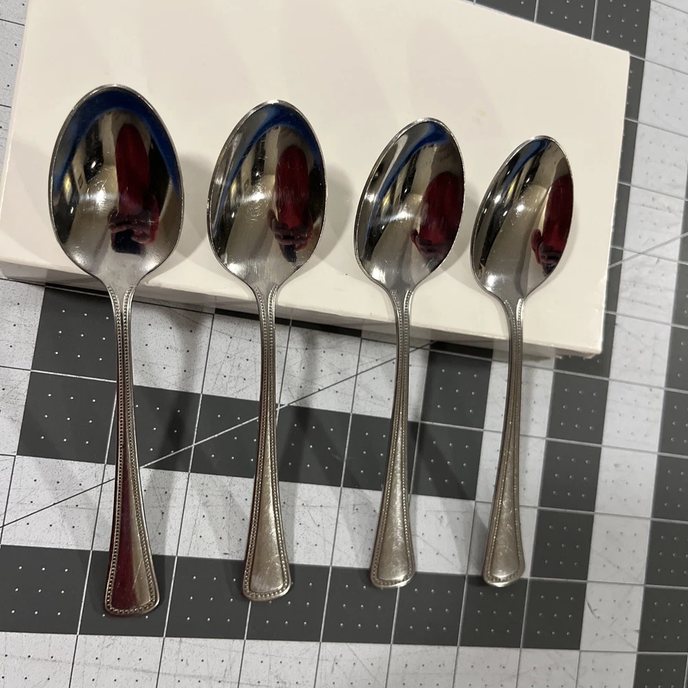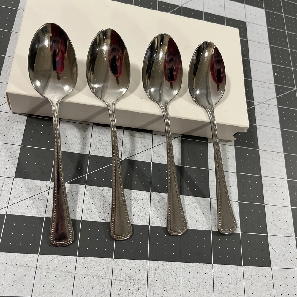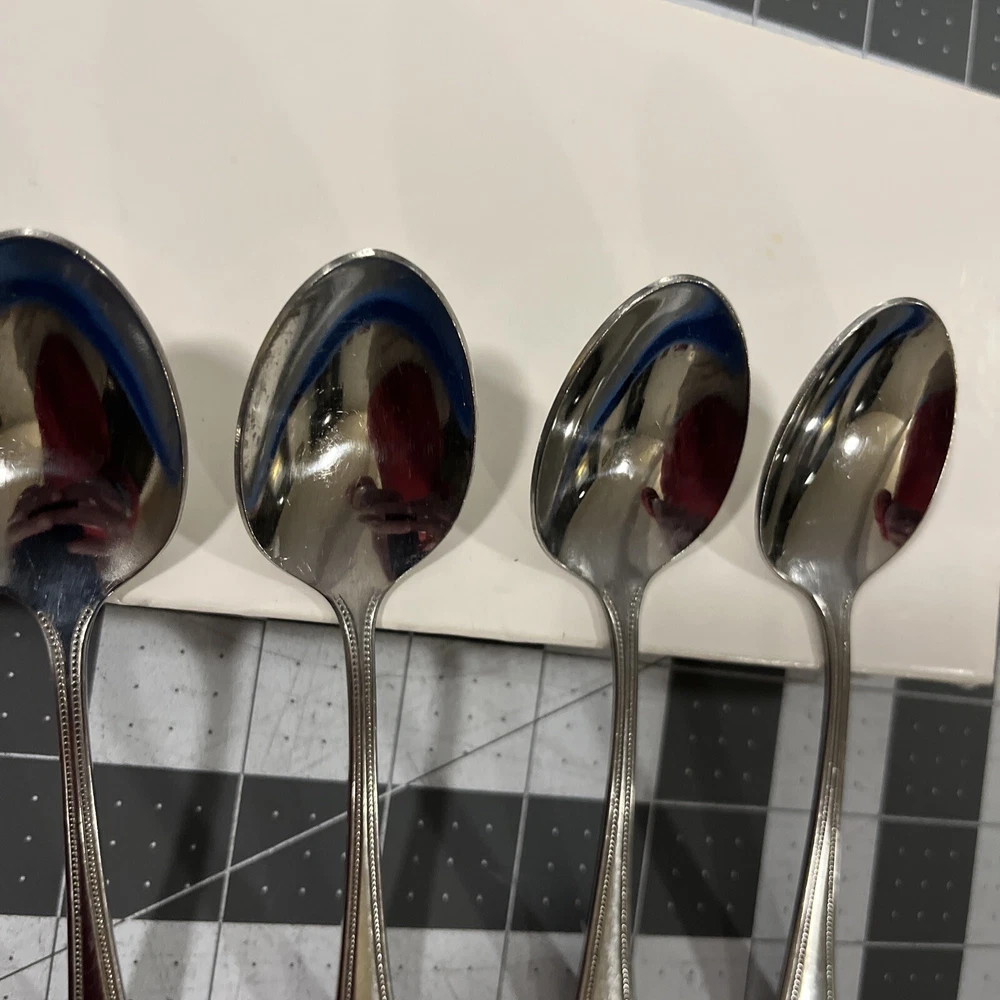 Oneida Needlepoint Beaded Artistry (4) Teaspoons 1881 Rogers Stainless Flatware