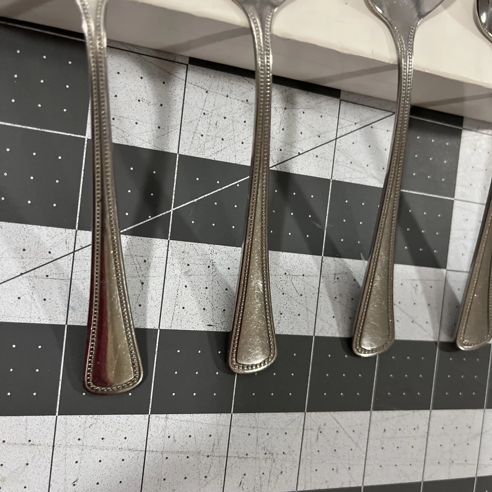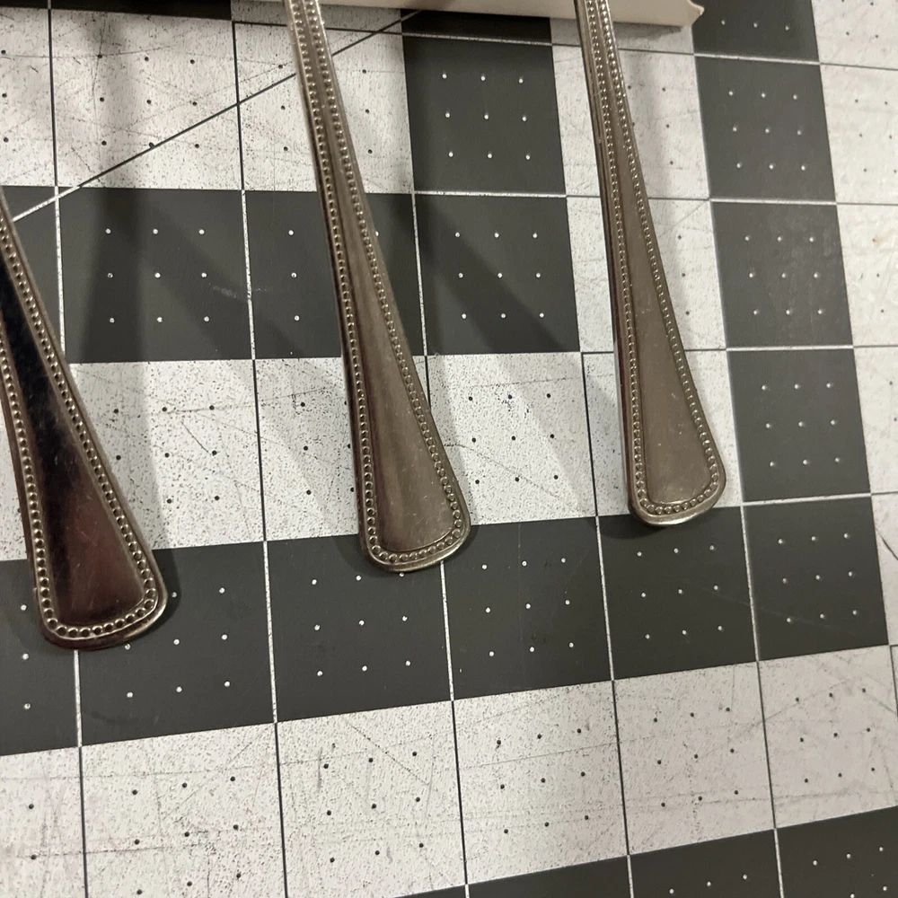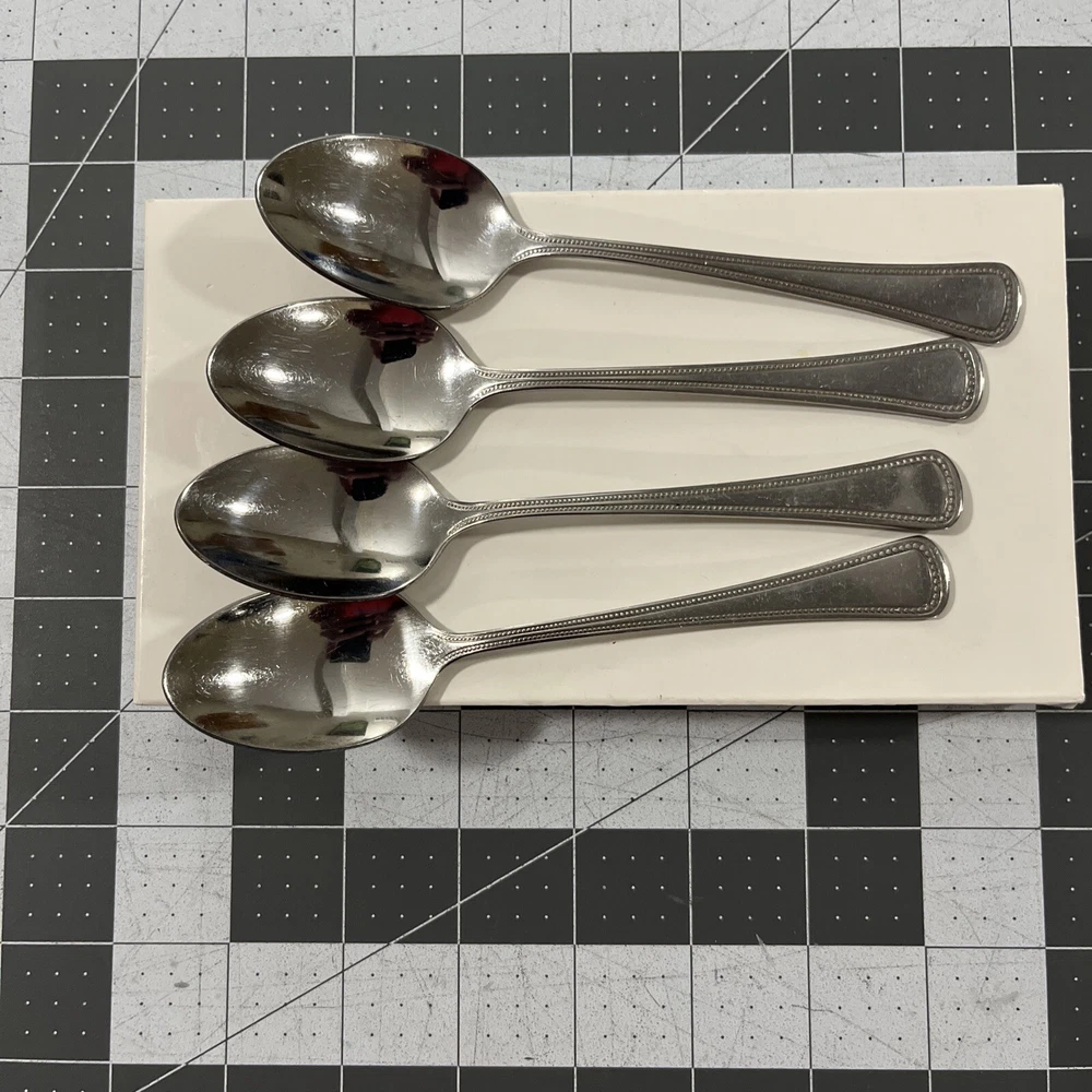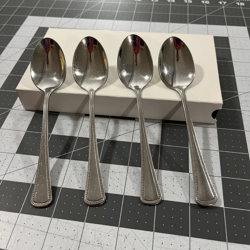 Oneida Needlepoint Beaded Artistry (4) Teaspoons 1881 Rogers Stainless Flatware