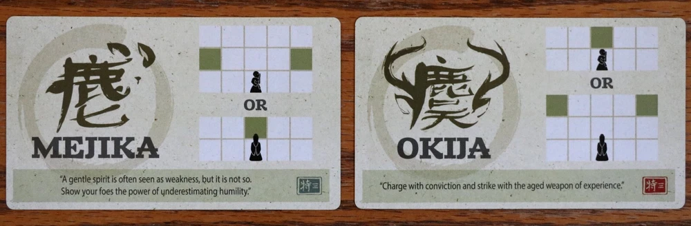 Up for sale are various promotional card sets for the game Onitama published by Arcane Wonders. Available for sale are the following options: Mejika and Okija Kumo and Sasori Steer and Lobster Hornet and Centipede Cat and Serow Cards are new, unused, and in mint condition.