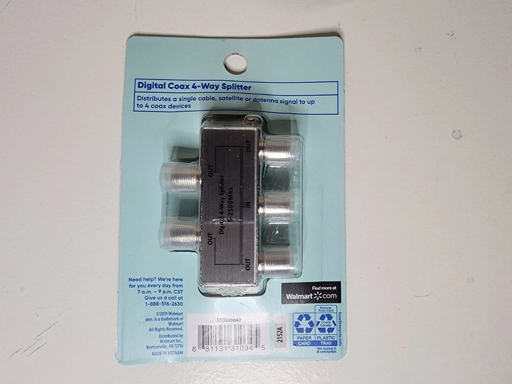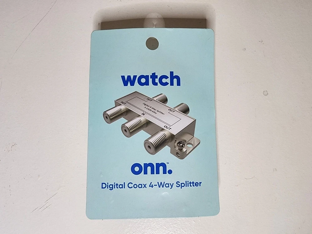 Experience a seamless signal distribution with the Onn Watch Digital Coax 4-Way Splitter. Designed to split a single coaxial cable signal into four, this splitter is an essential for anyone looking to connect multiple devices requiring a coaxial input, such as cable modems, TV antennas, or home theater systems. Crafted with precision, it features an RCA connection and a DC pass, ensuring a clean and uninterrupted signal transfer. The Onn brand is synonymous with reliability and quality, making this splitter a trustworthy addition to your home entertainment setup.