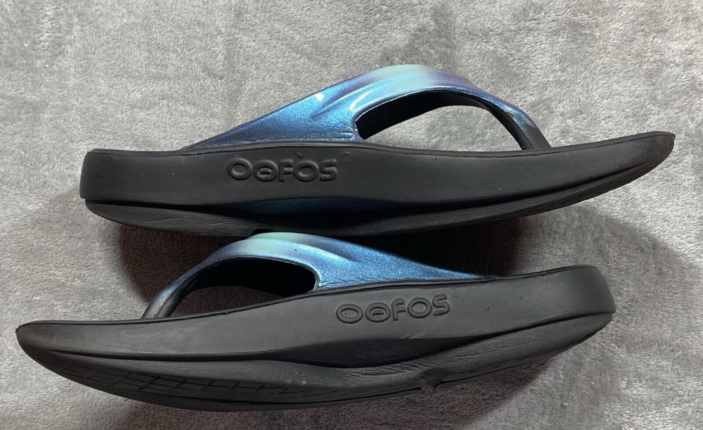 Oofos Oolala Luxe Recovery Flip Flops Womens SZ 10 Black Atlantis Thong Sandals Fair to good pre-owned condition. All clothing is subject to stretch or shrink from use and cleaning by prior owners. See photos for the actual item available. Feel free to contact me with any questions. Elevate your summer footwear collection with these Oofos Oolala Luxe Recovery Flip Flop Thong Sandals in Black and Blue. These stylish sandals feature a ombre pattern, slip-on closure, and arch support for maximum comfort. The rubber upper material provides durability, making them perfect for outdoor activities or travel. With a standard shoe width and breathable design, these sandals are perfect for the summer, fall, or spring seasons. The Oofos Luxe Sandal product line offers a cushioned and lightweight feel, making them ideal for school, beach, hippie, bohemian, college, or casual occasions. The sandals are available in women's size 10. Shop our store with confidence as we offer 30-day returns on all purchases. Additionally you can save money by making multiple purchases to take advantage of our discount shipping policy. You will pay the highest shipping cost for a single item in your cart and $3 for each additional item.