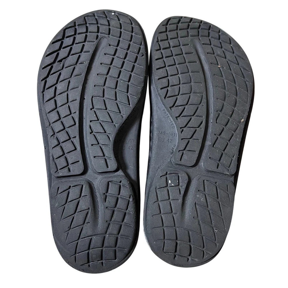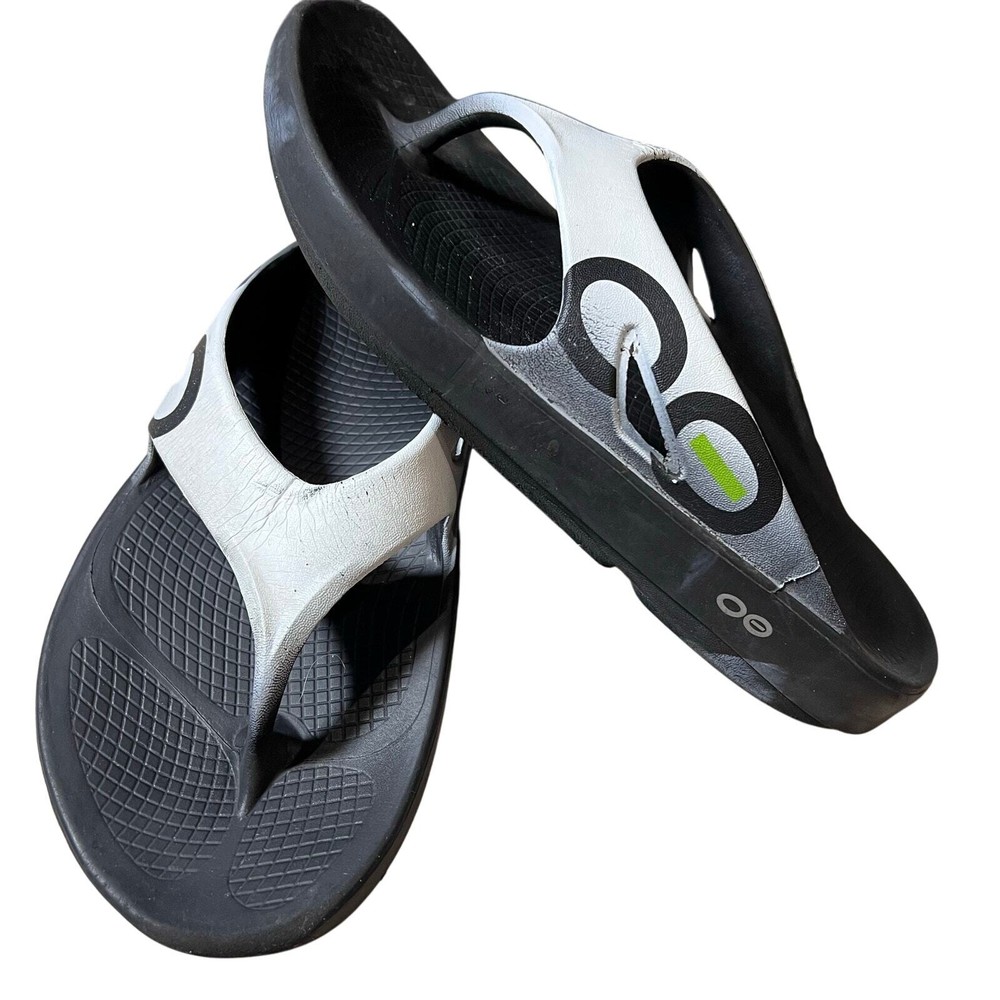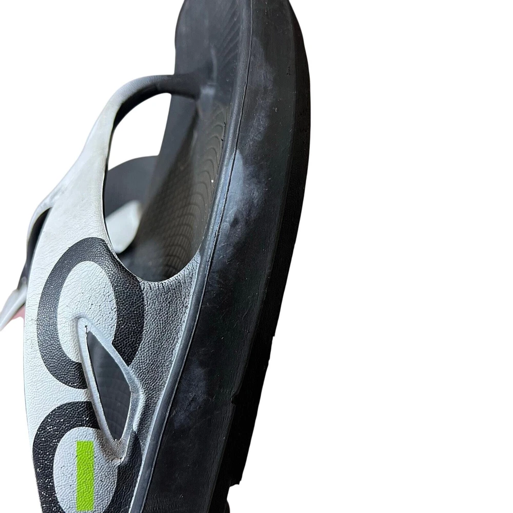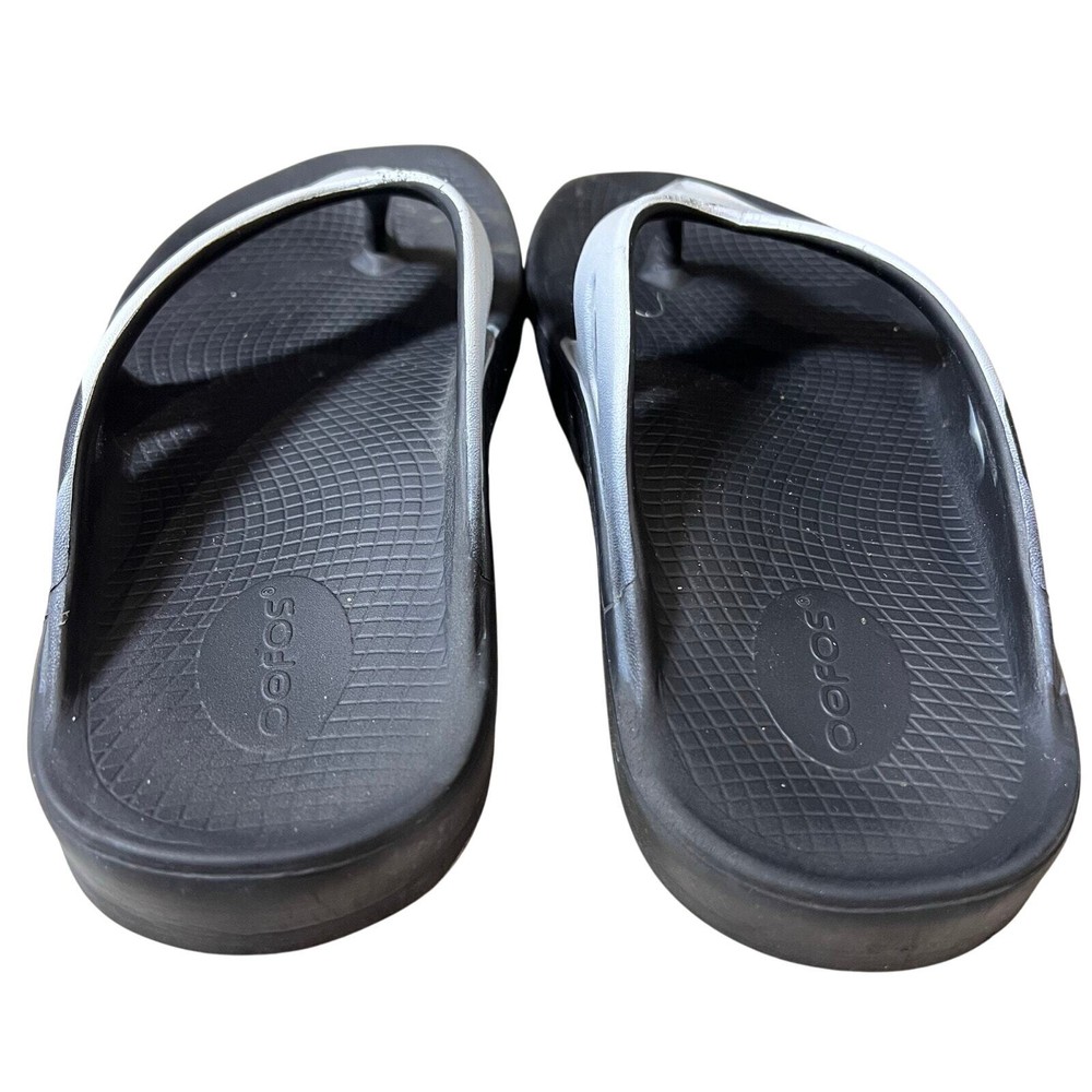 Oofos Ooriginal Flip Flop Thong Sport Sandals Black US M9 W11 Recovery Runner Superior Arch Support, Recovery Flip Flops Oofoam absorbs 37% more impact than traditional footwear foam and reduces stress on sore feet, knees, and back Great condition with some signs of wear. Paint is cracking on the tops and there is a color discoloration spots on the sides. No major flaws detected. Please inspect photos to approve condition. Pictures are of actual items - Pet-free and Smoke-Free home - Open to offers - FAST SHIPPING from Florida runner, running, run, walk, walking, walker, race, road race, 5K, Marathon, Recovery, Theme Park, standing, arch support, comfortable, support,